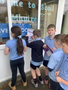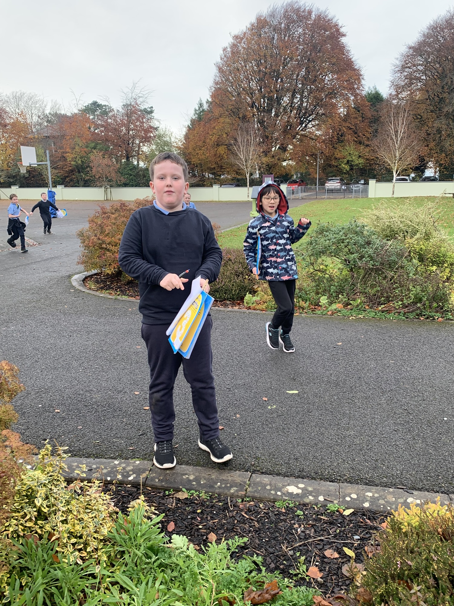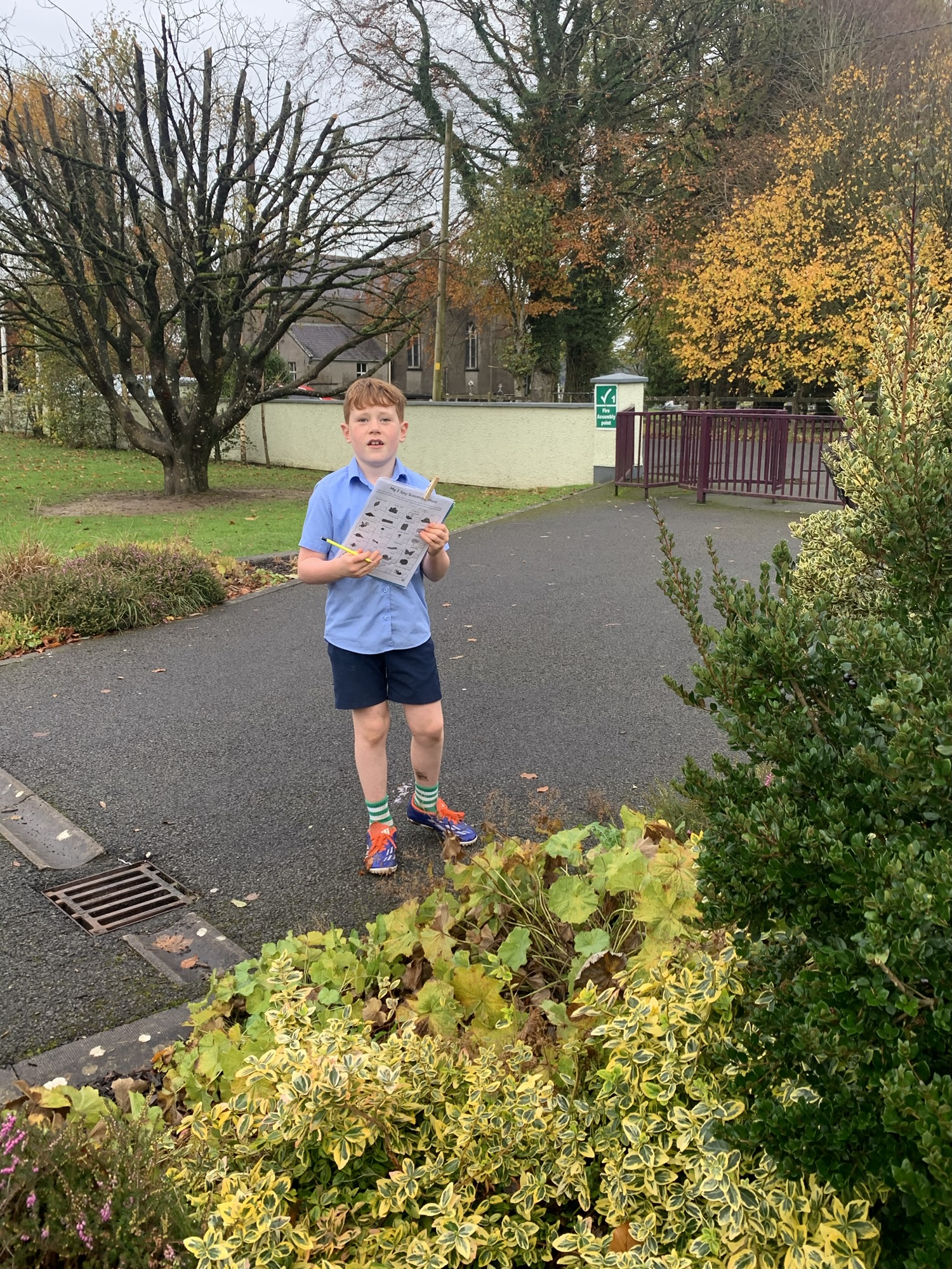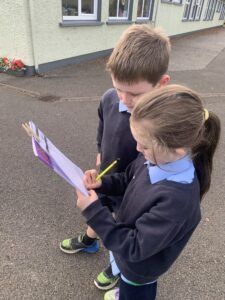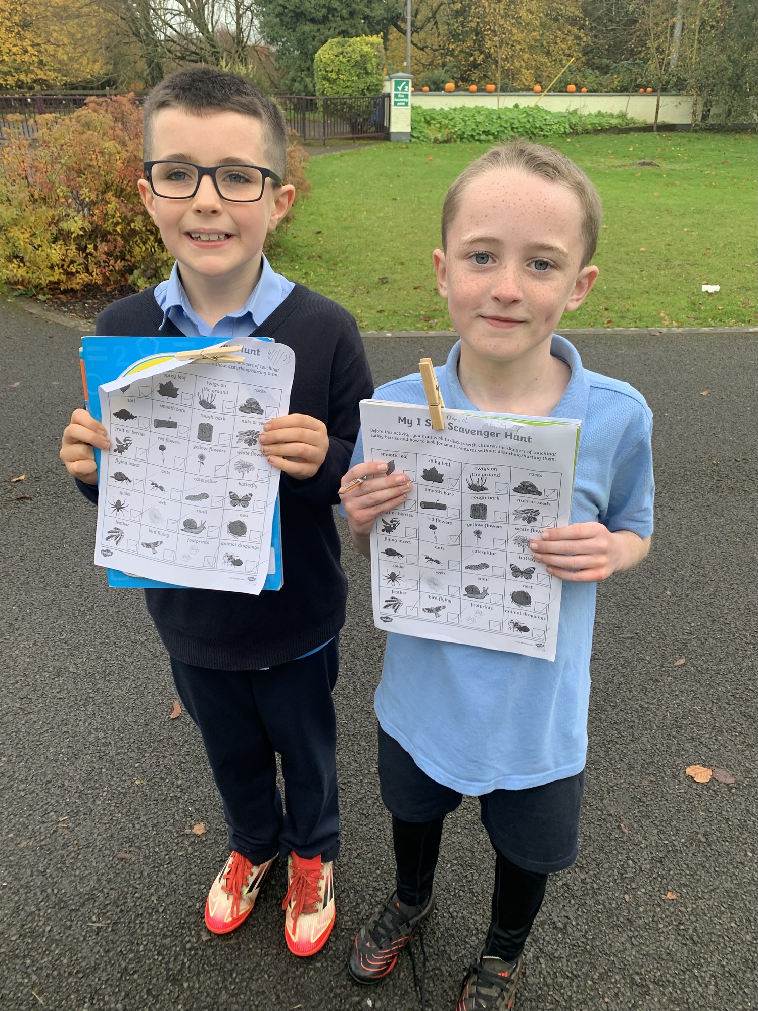 4th November: 2nd and 3rd class explored outside using a scavenger hunt tick sheet.