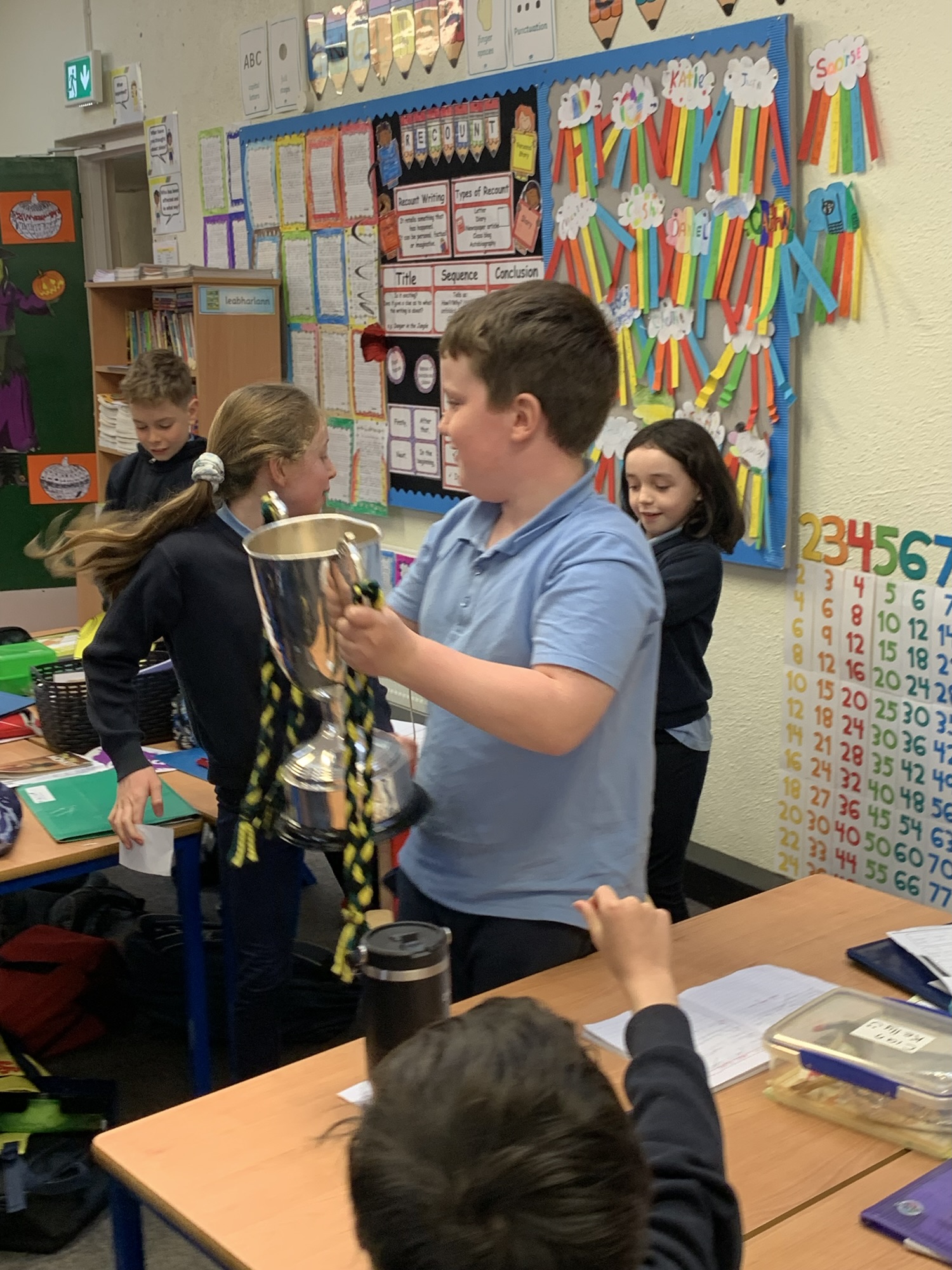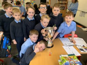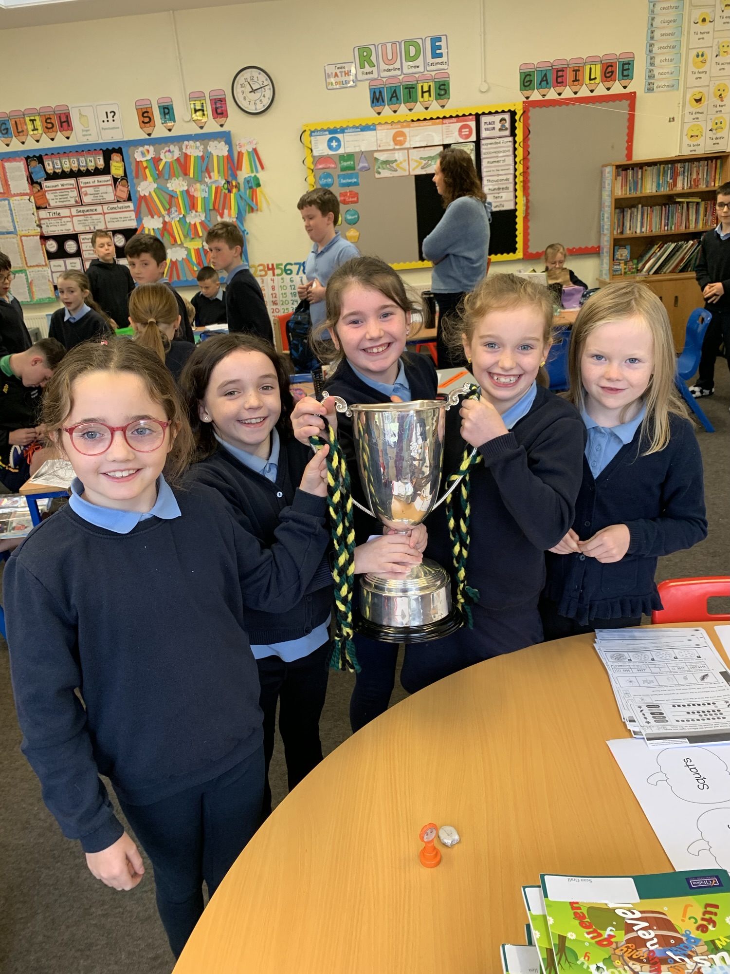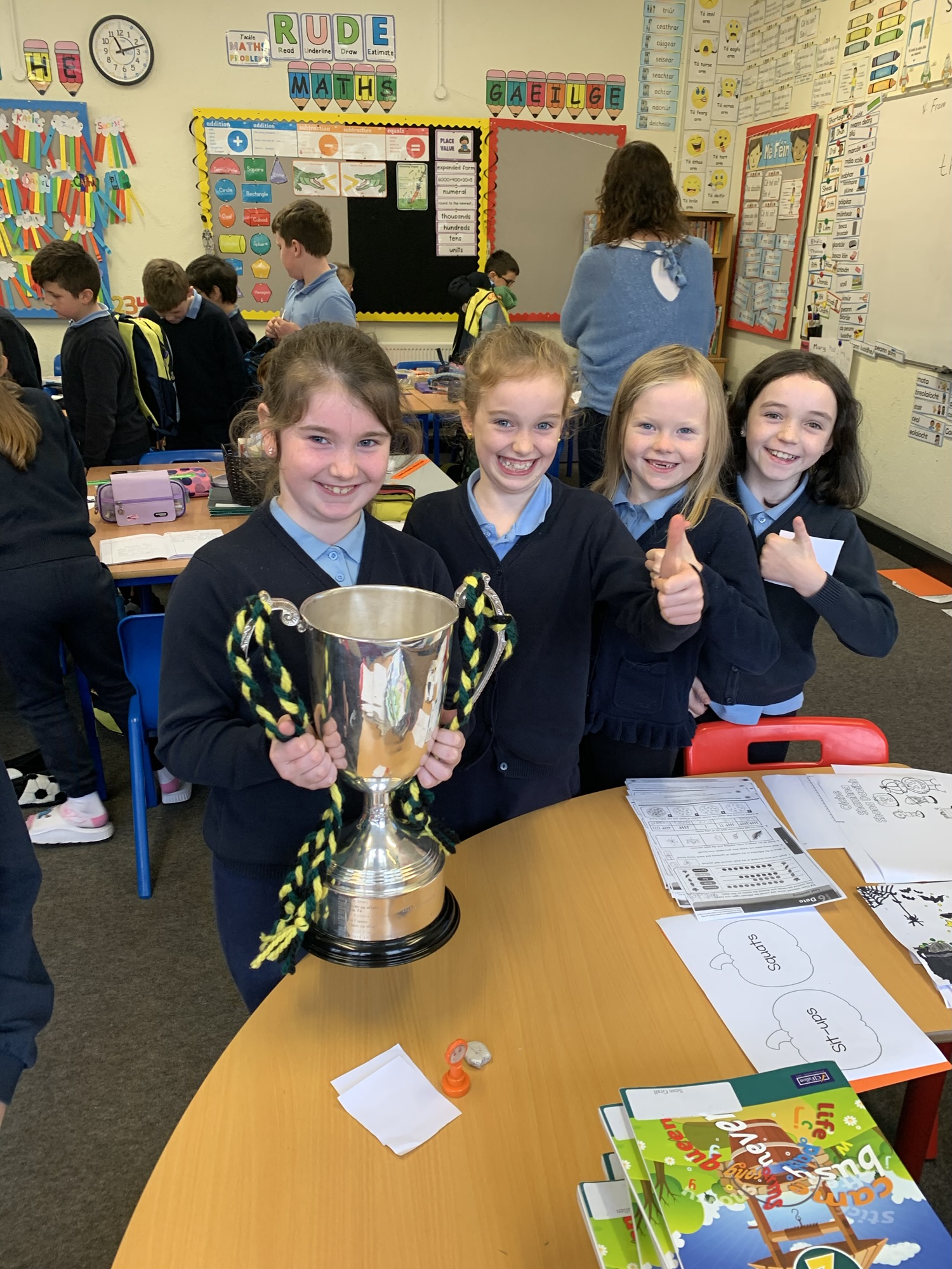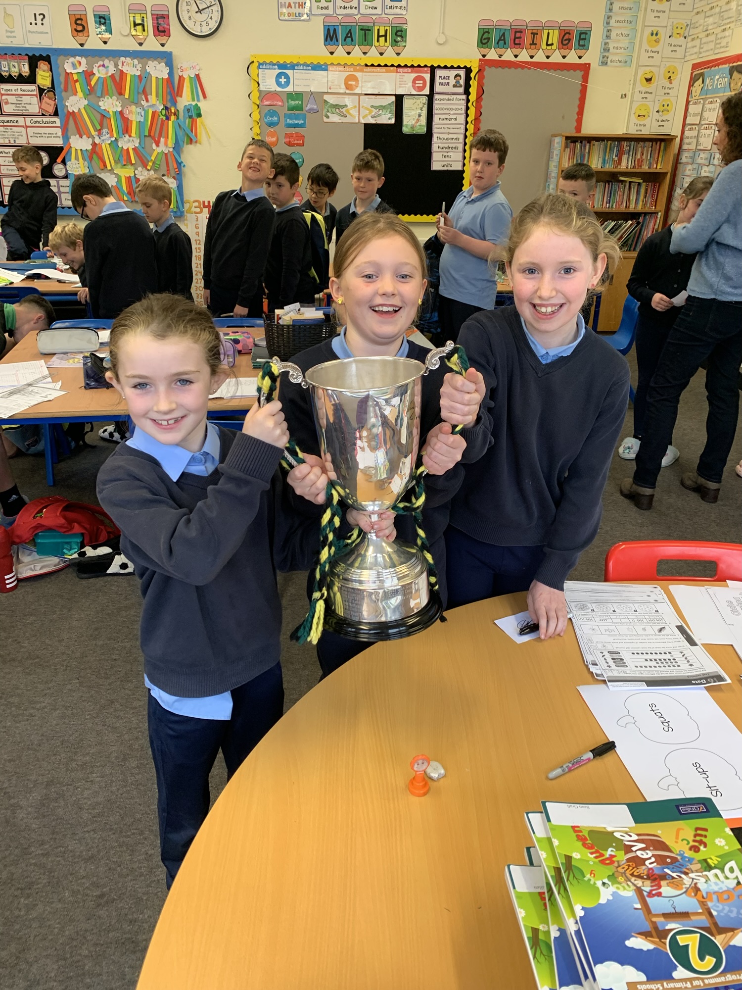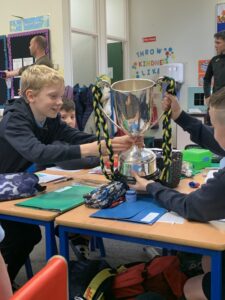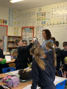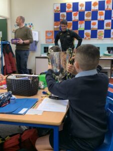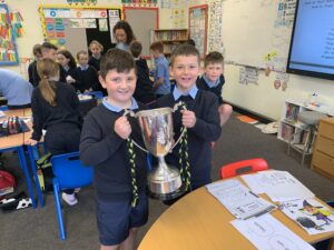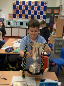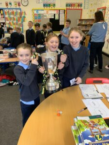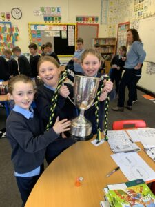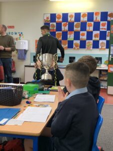 We had a visit from Moylagh GAA chairperson, Joe Melia and Meath Hurler Darren O’Higgins, who came to school to show the kids the Cup the Kilskyre/ Moylagh Hurlers won in a very exciting final!