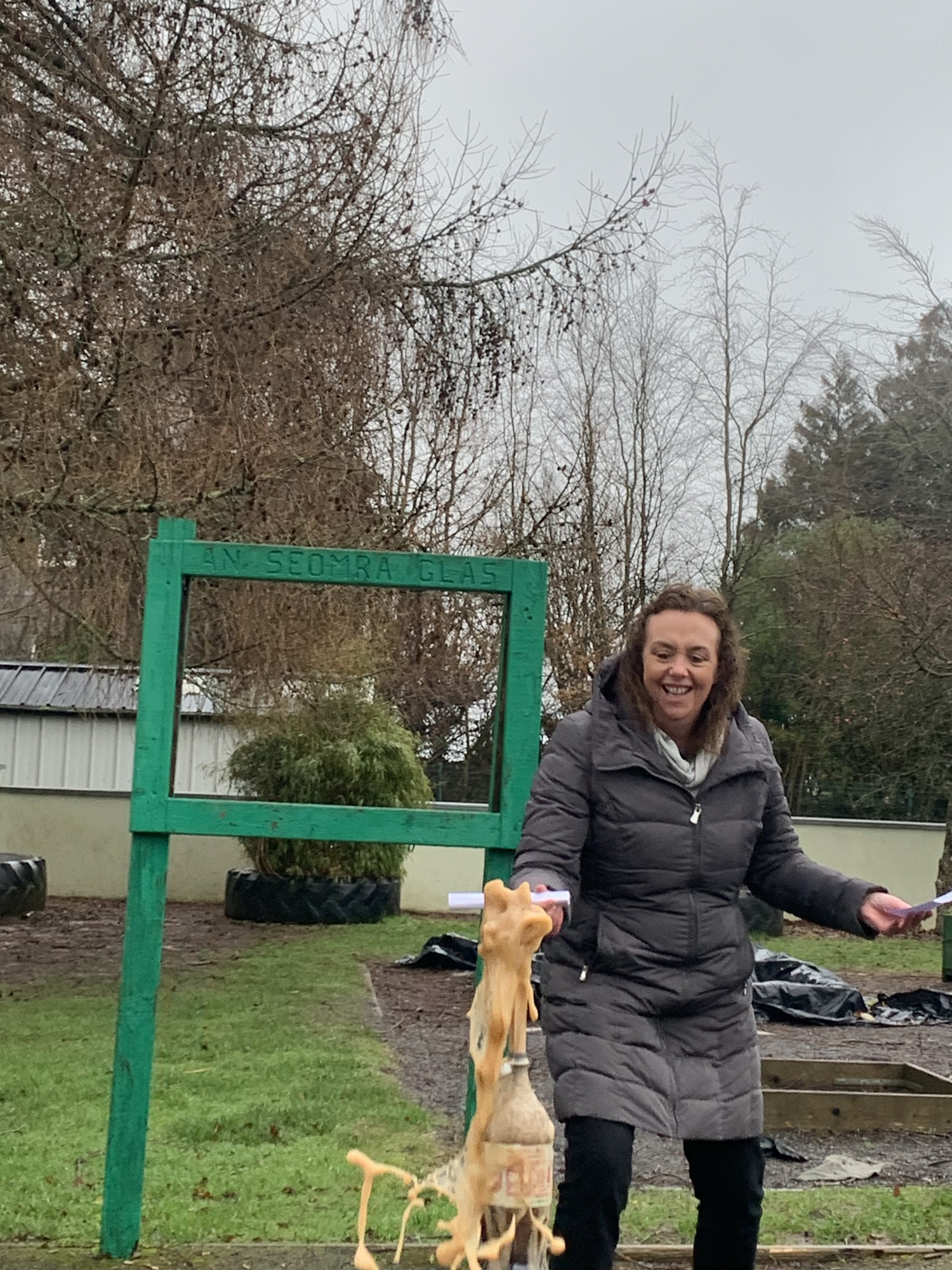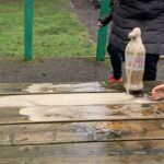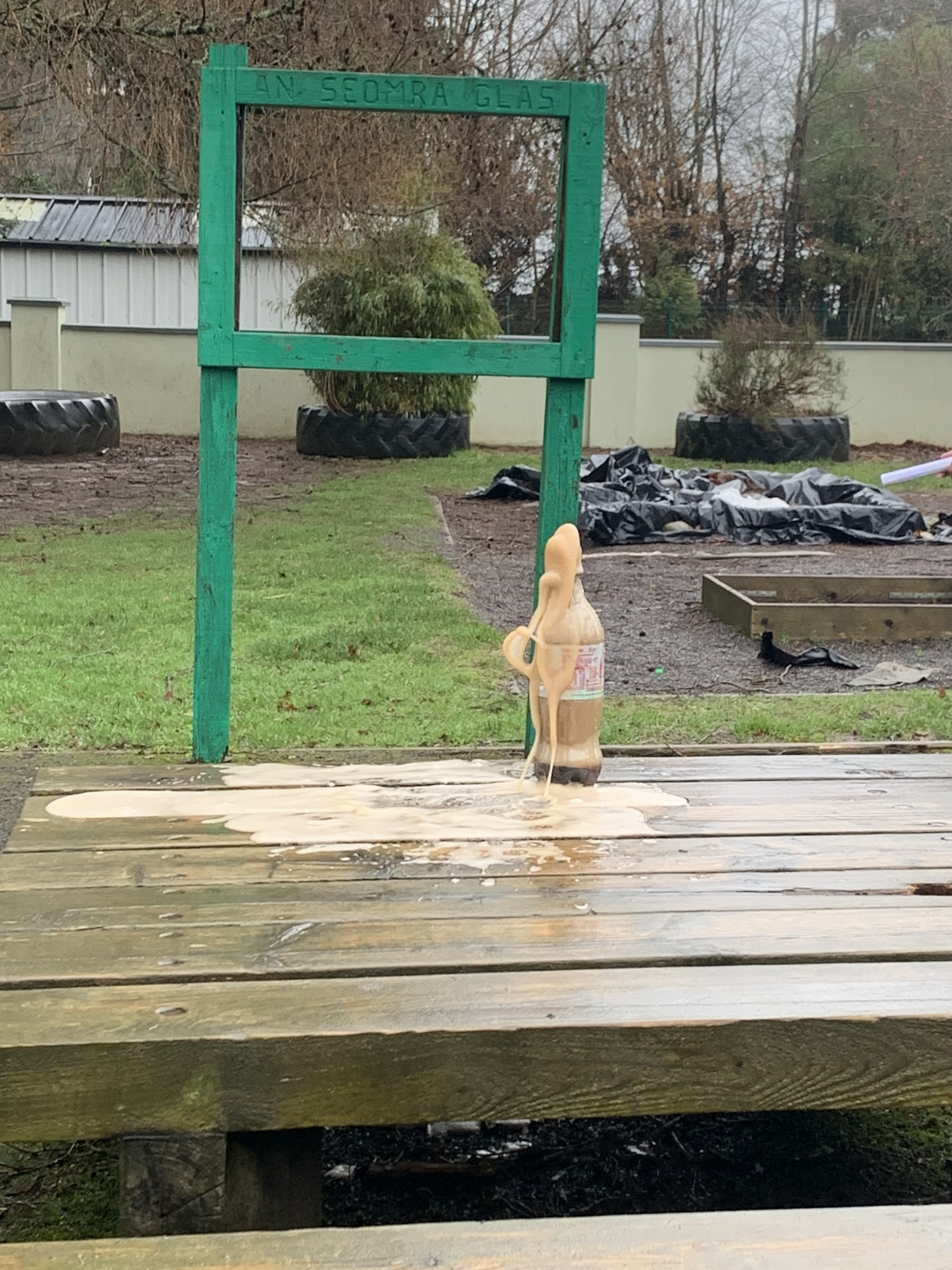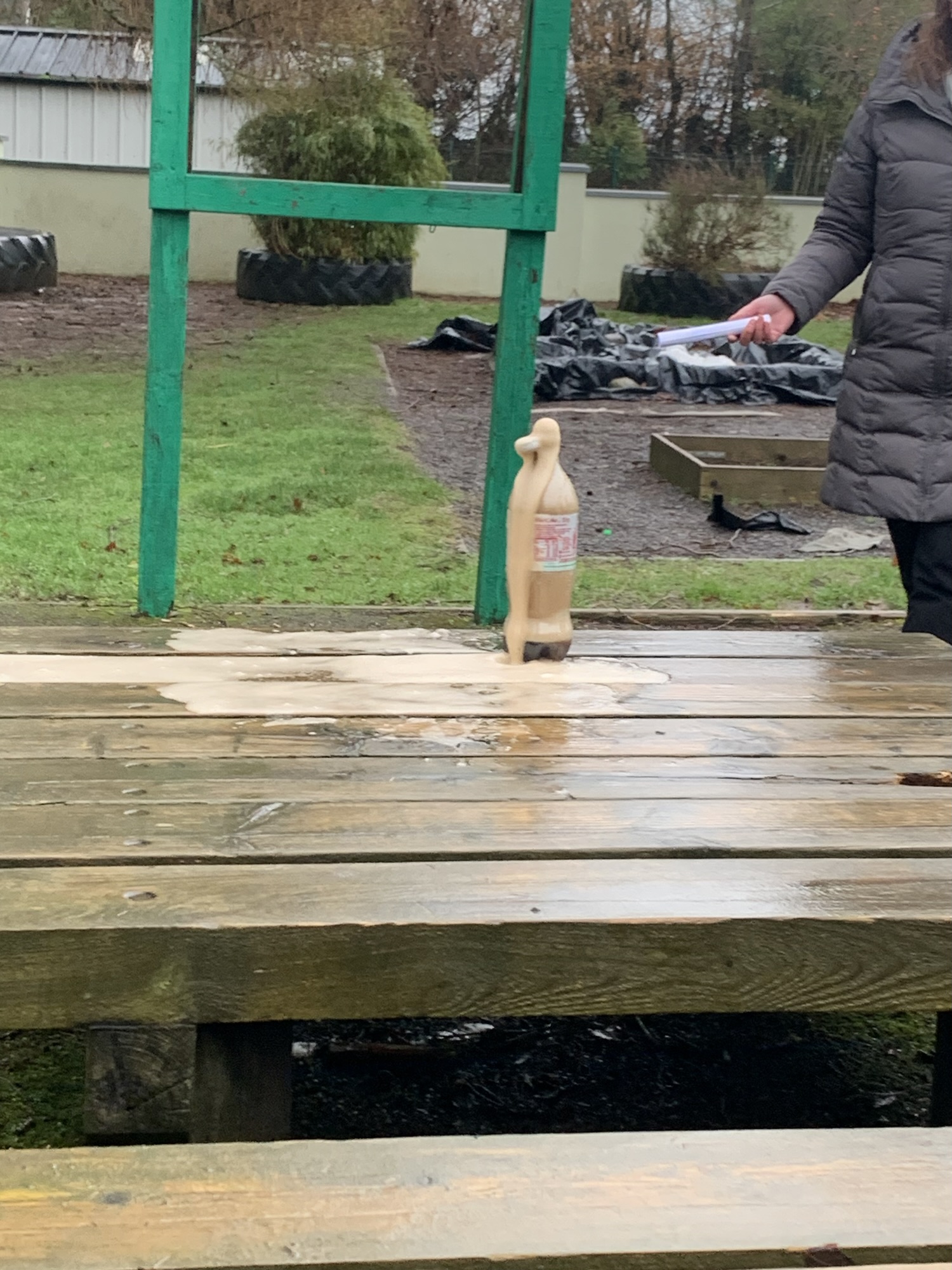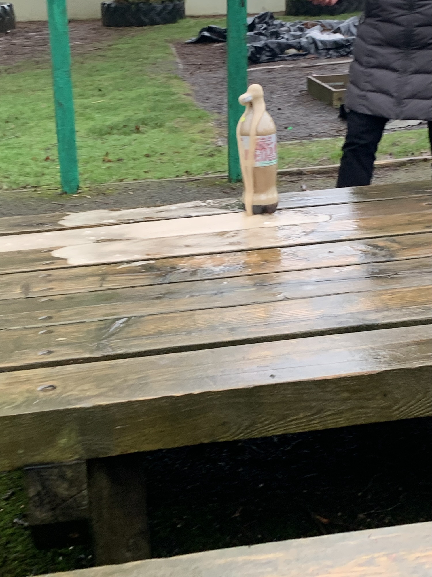 Outside on the final day of science week, we explored what happens when we place Mentos into a bottle of Diet Coke. We saw a physical reaction that caused a large eruption of the coke.