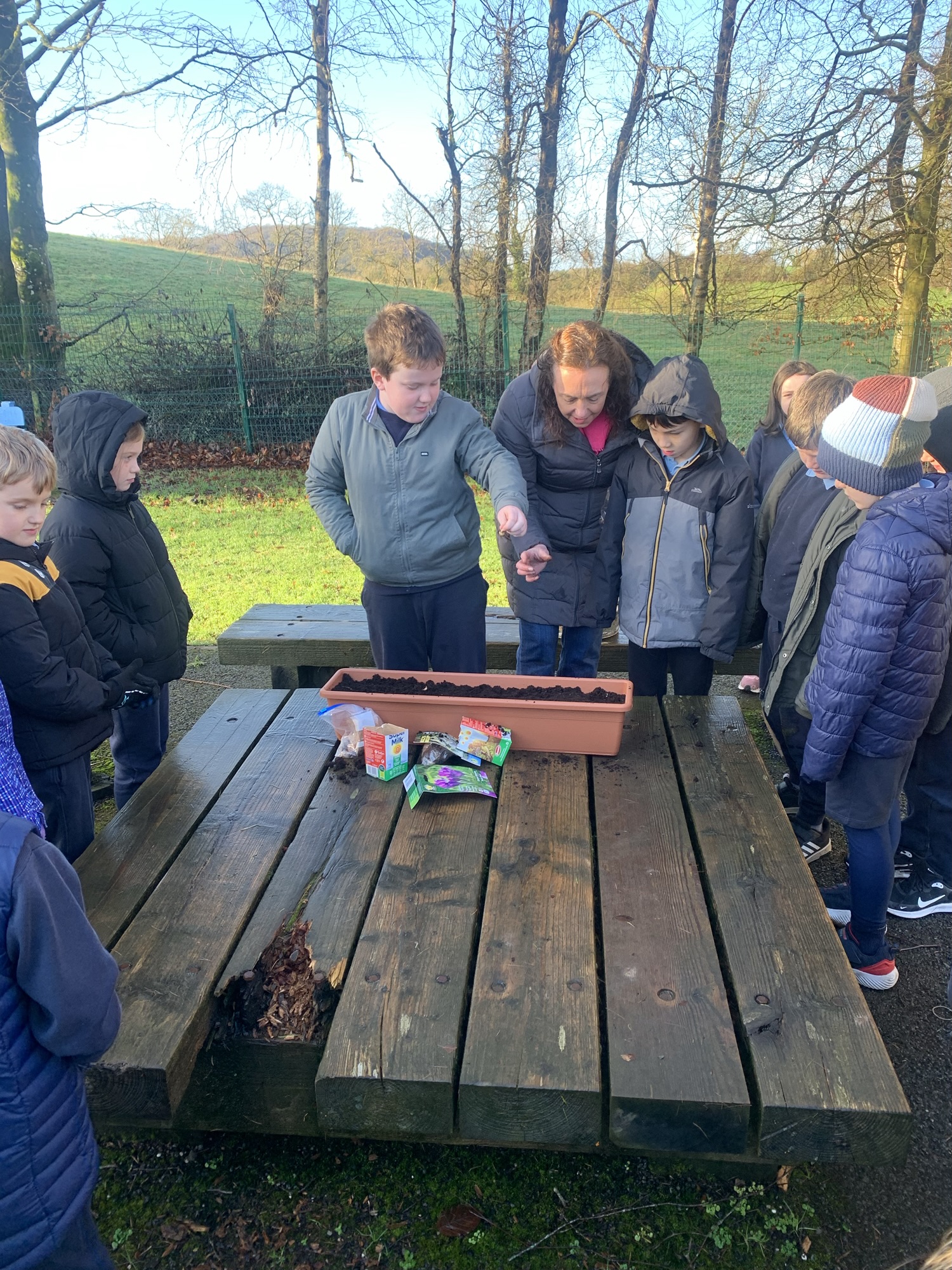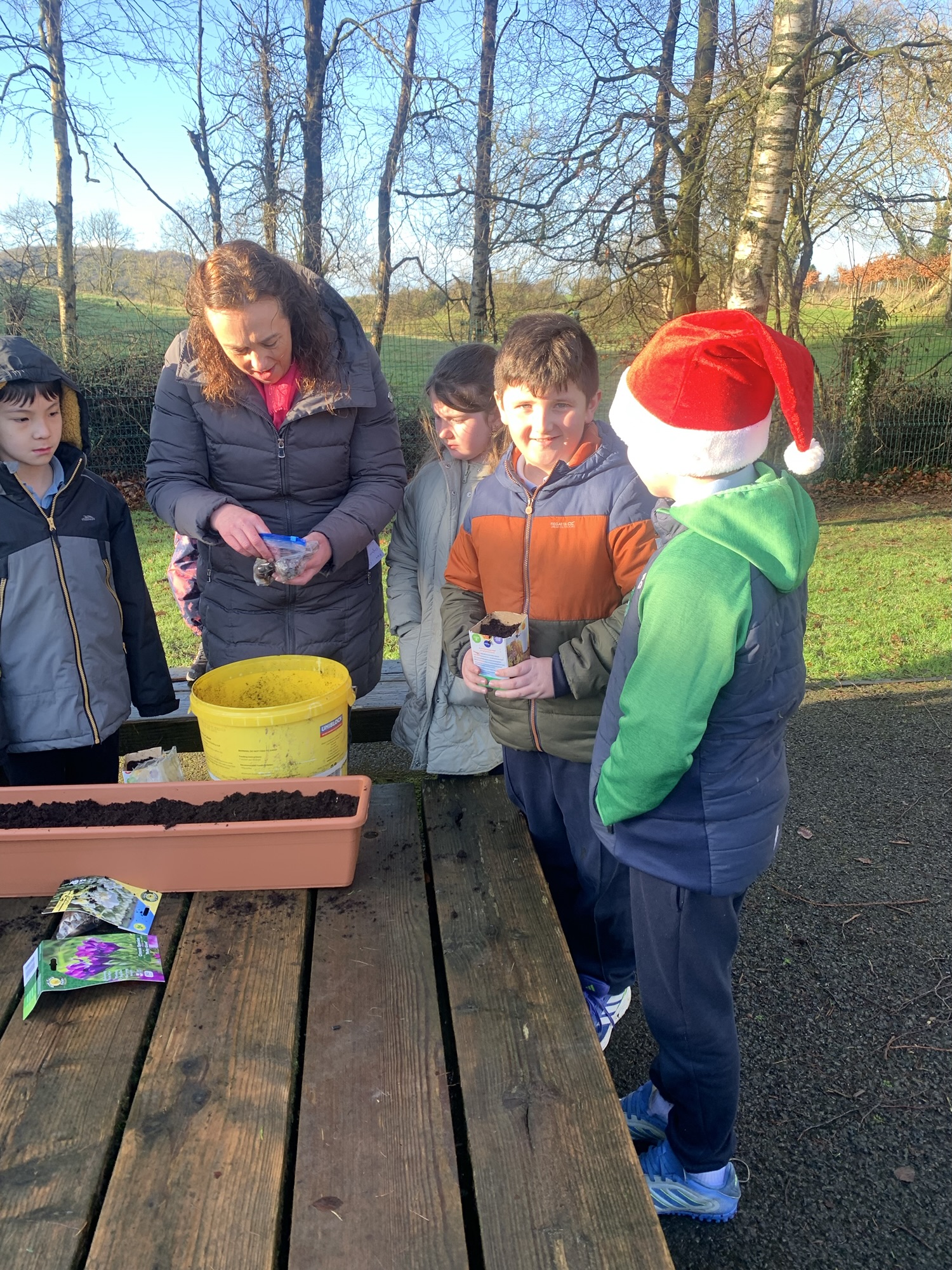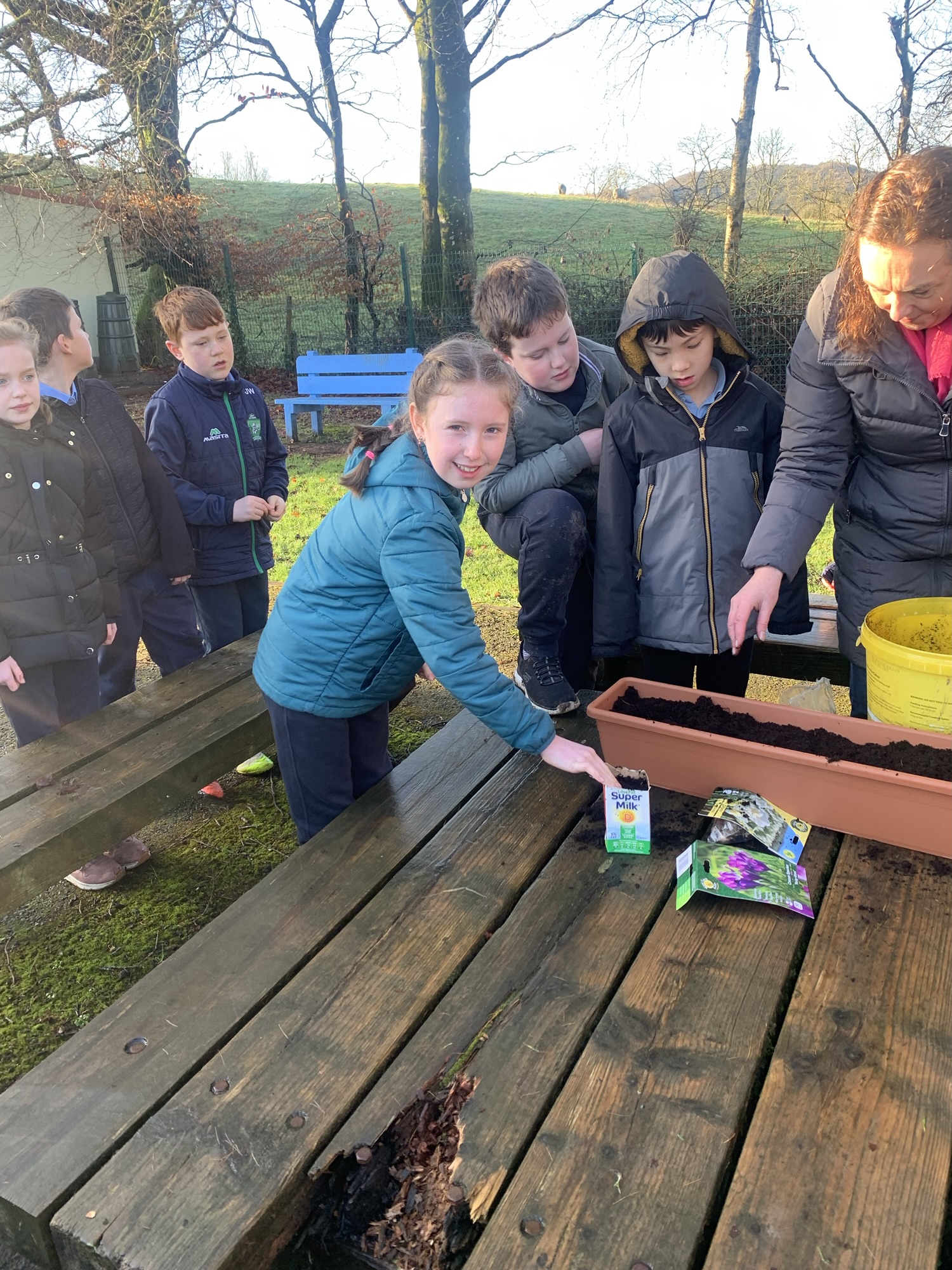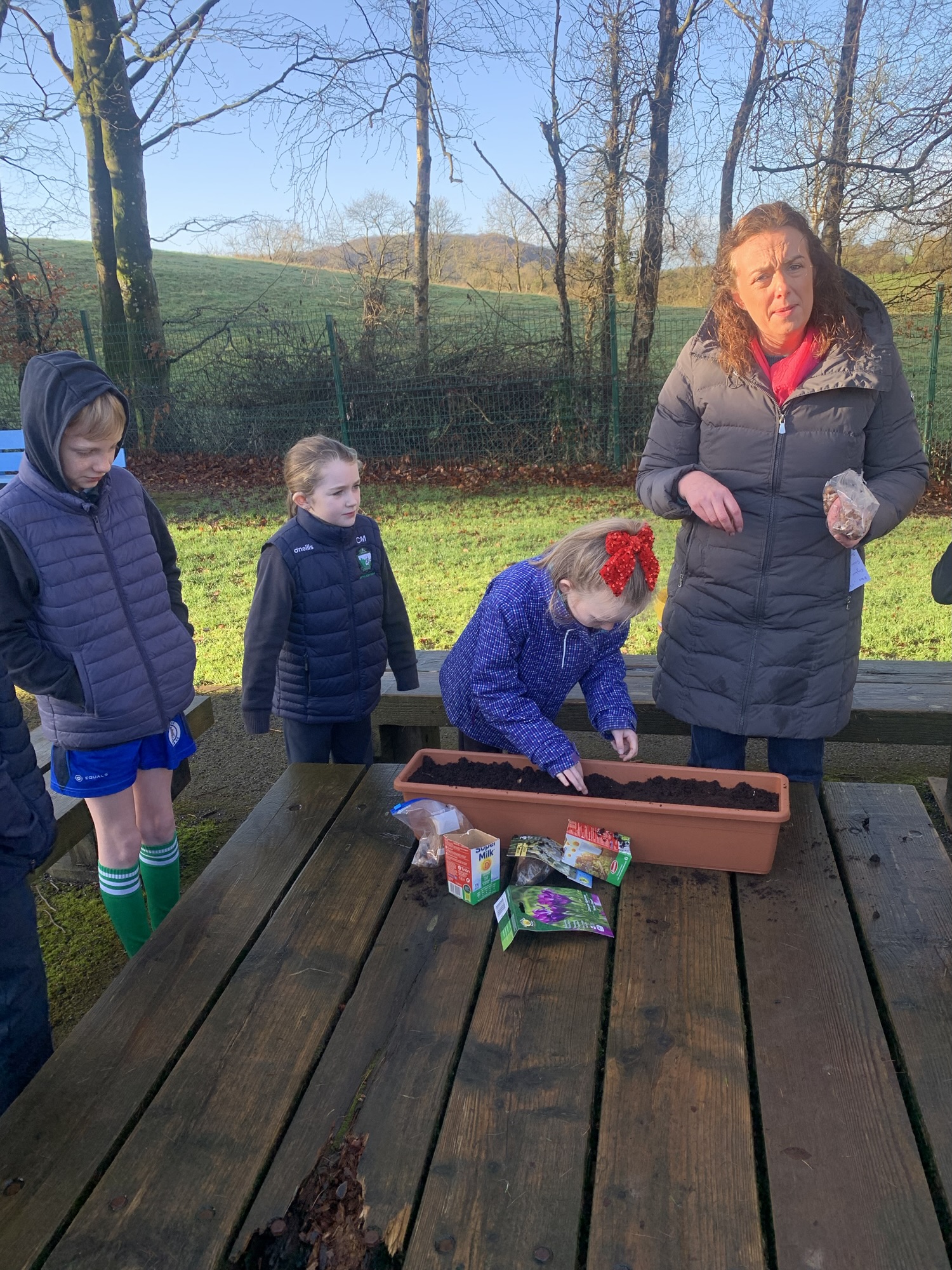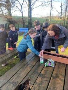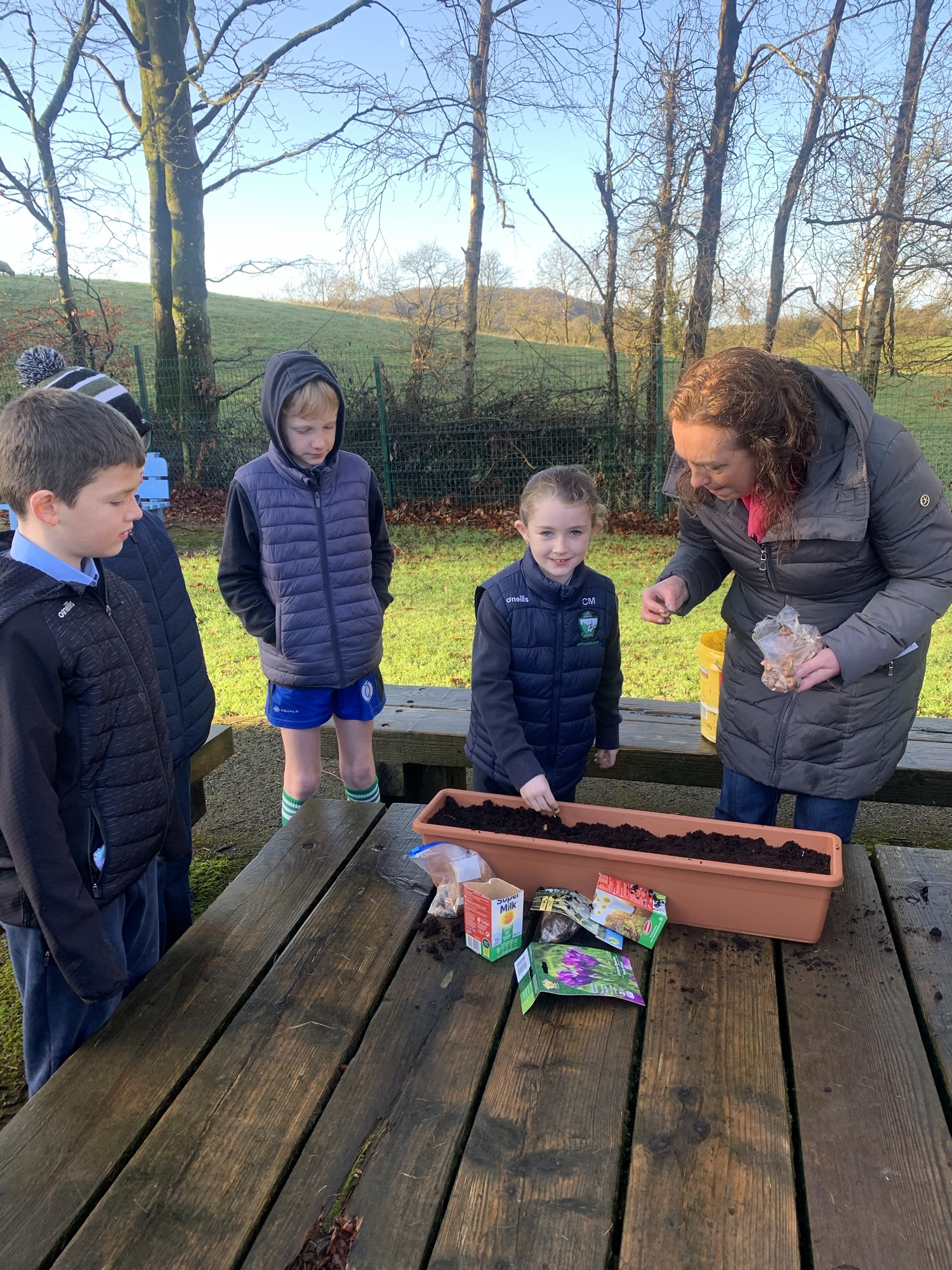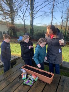 Ms Clarke brought 2nd and 3rd class outside to plant some bulbs for Spring