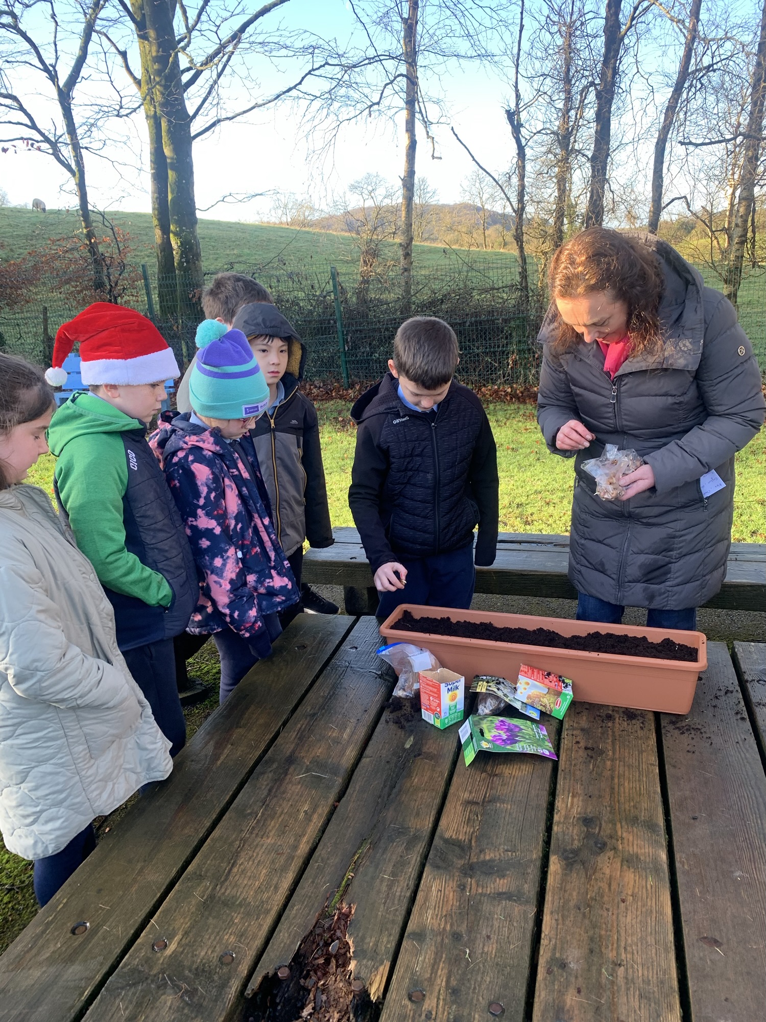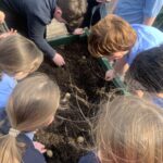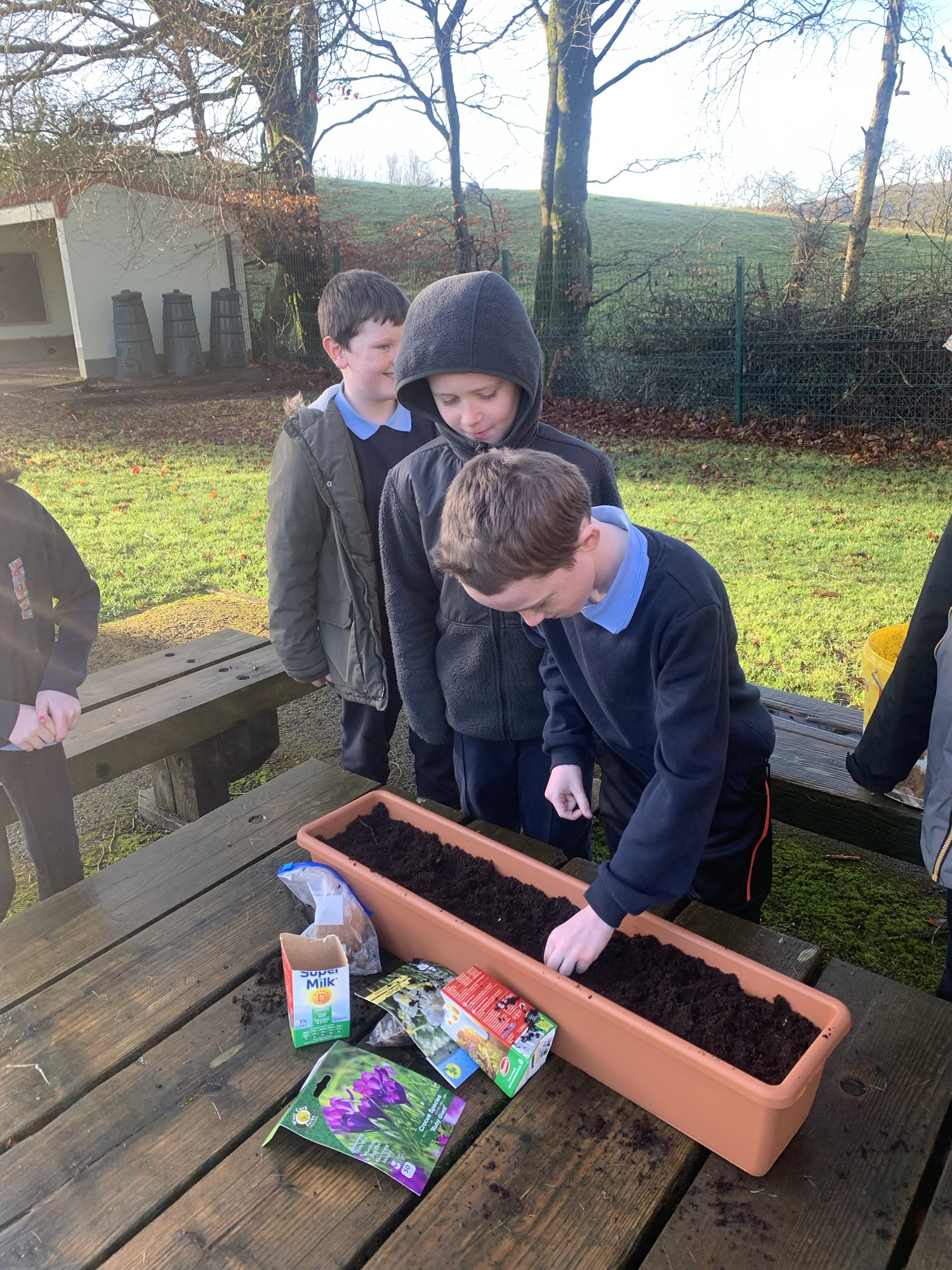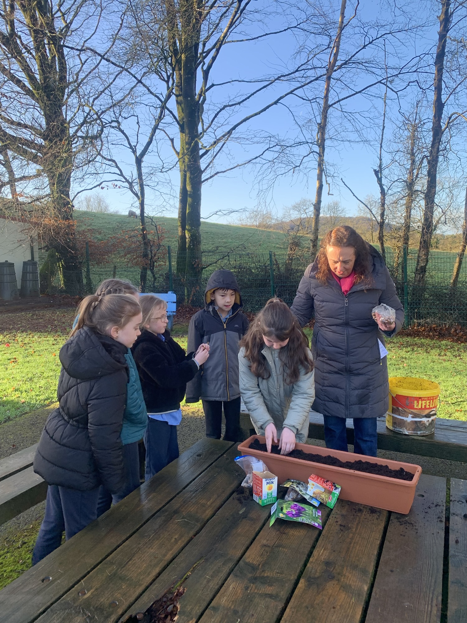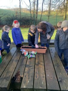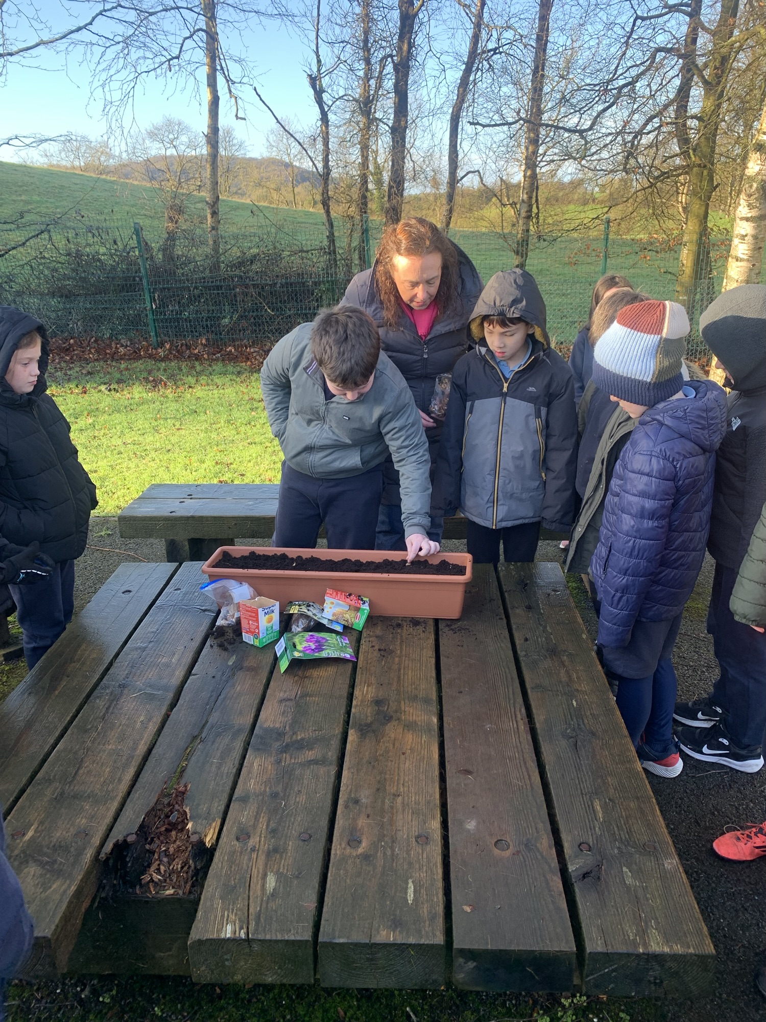 Ms Clarke brought 2nd and 3rd class outside to plant some bulbs for Spring
