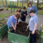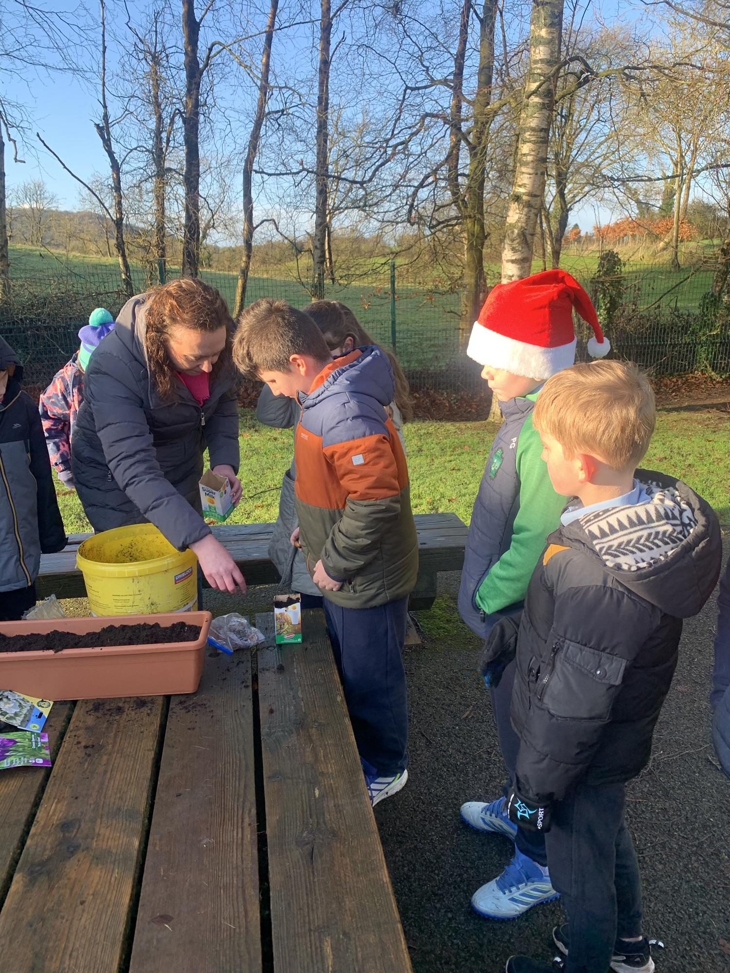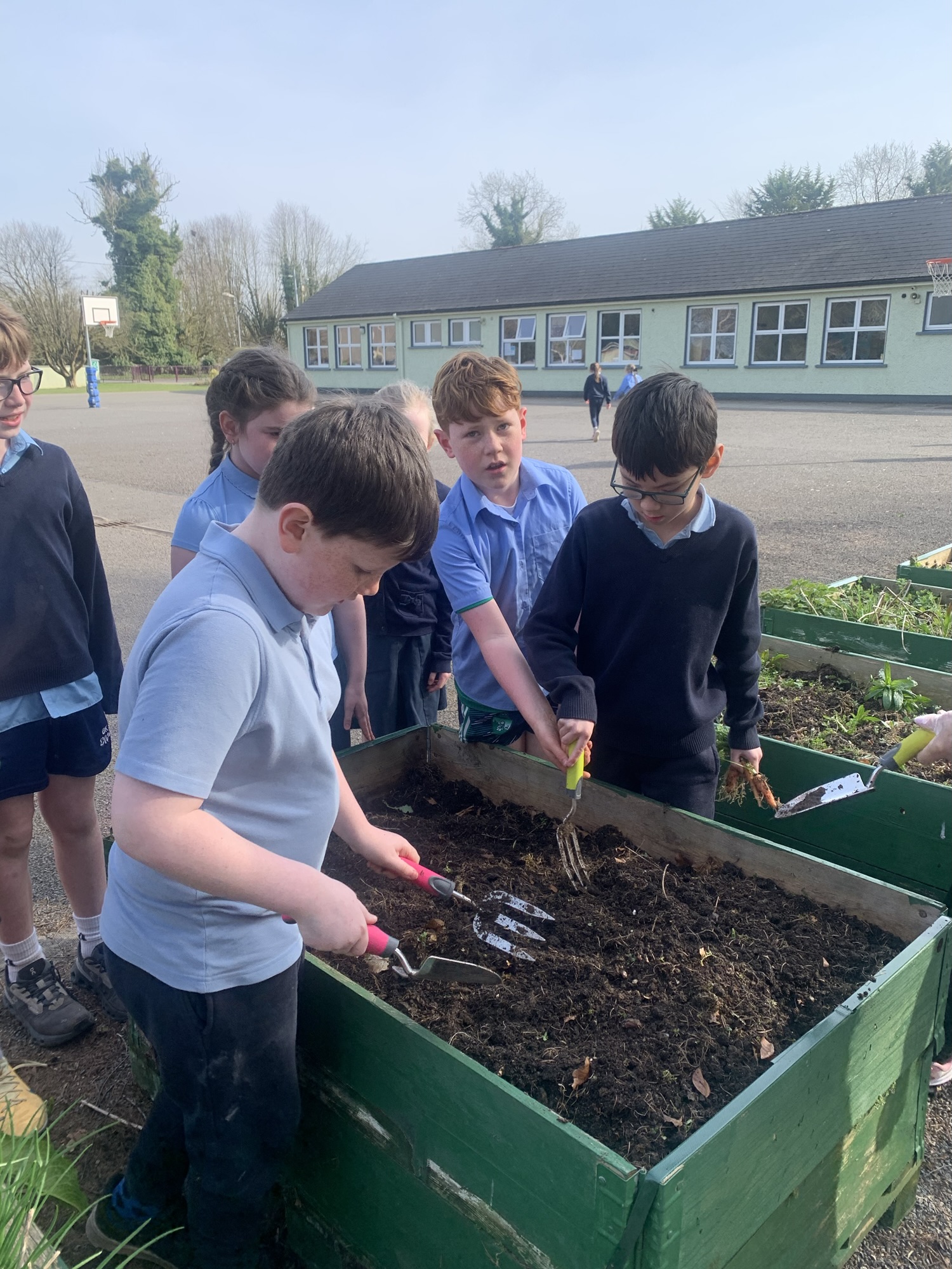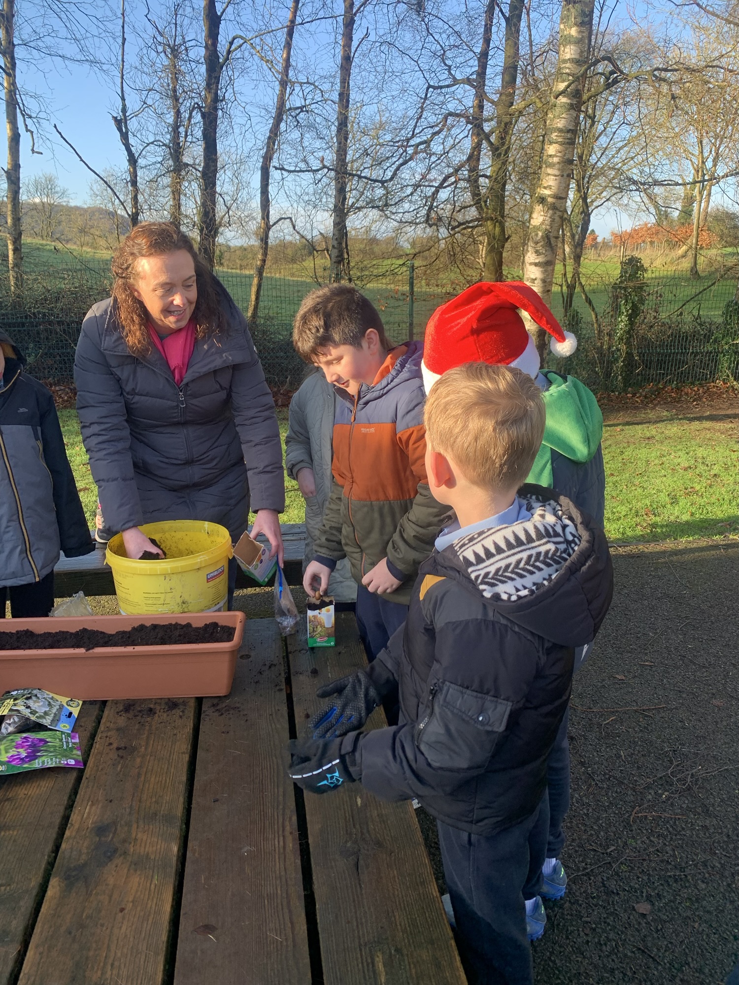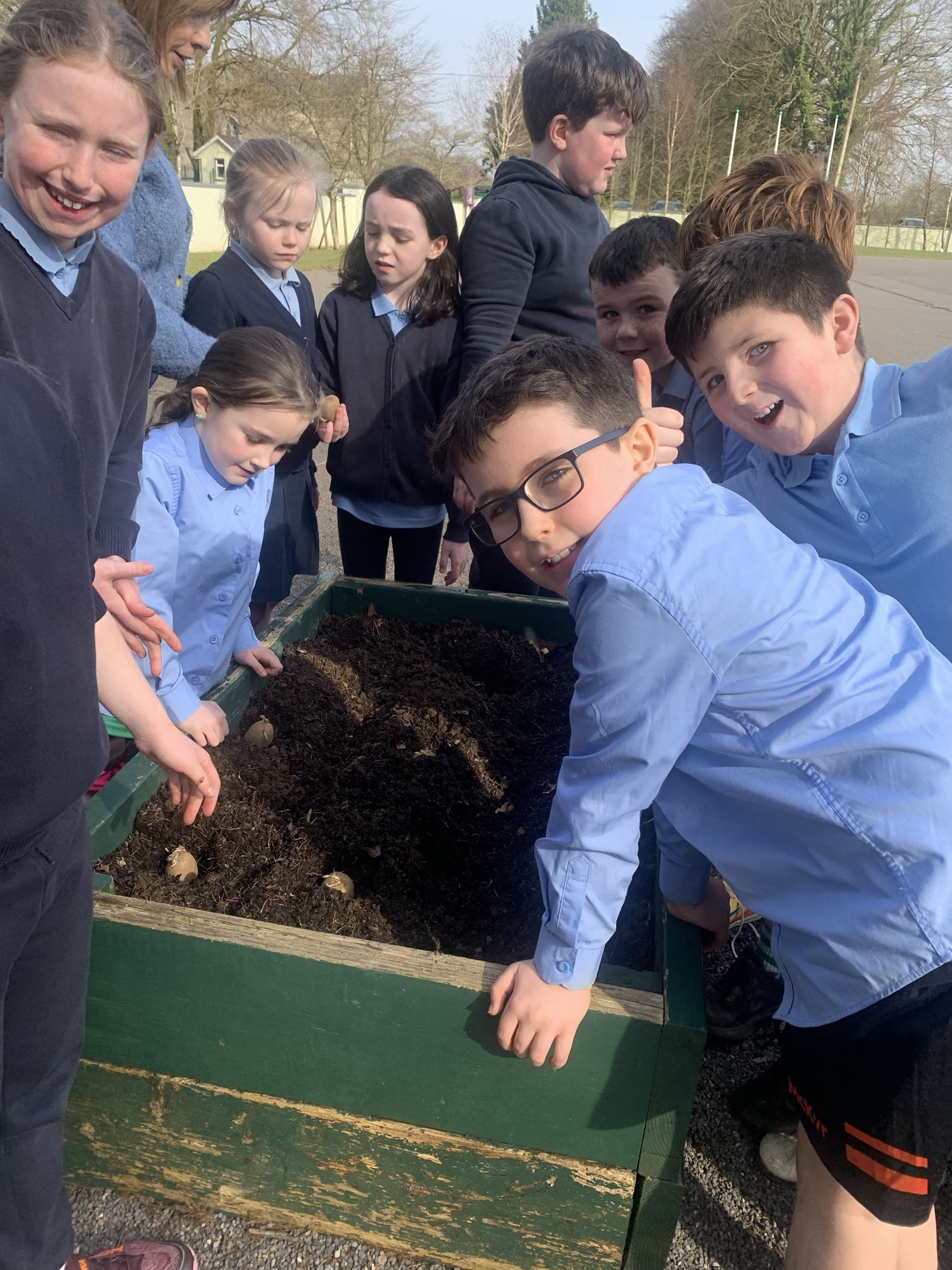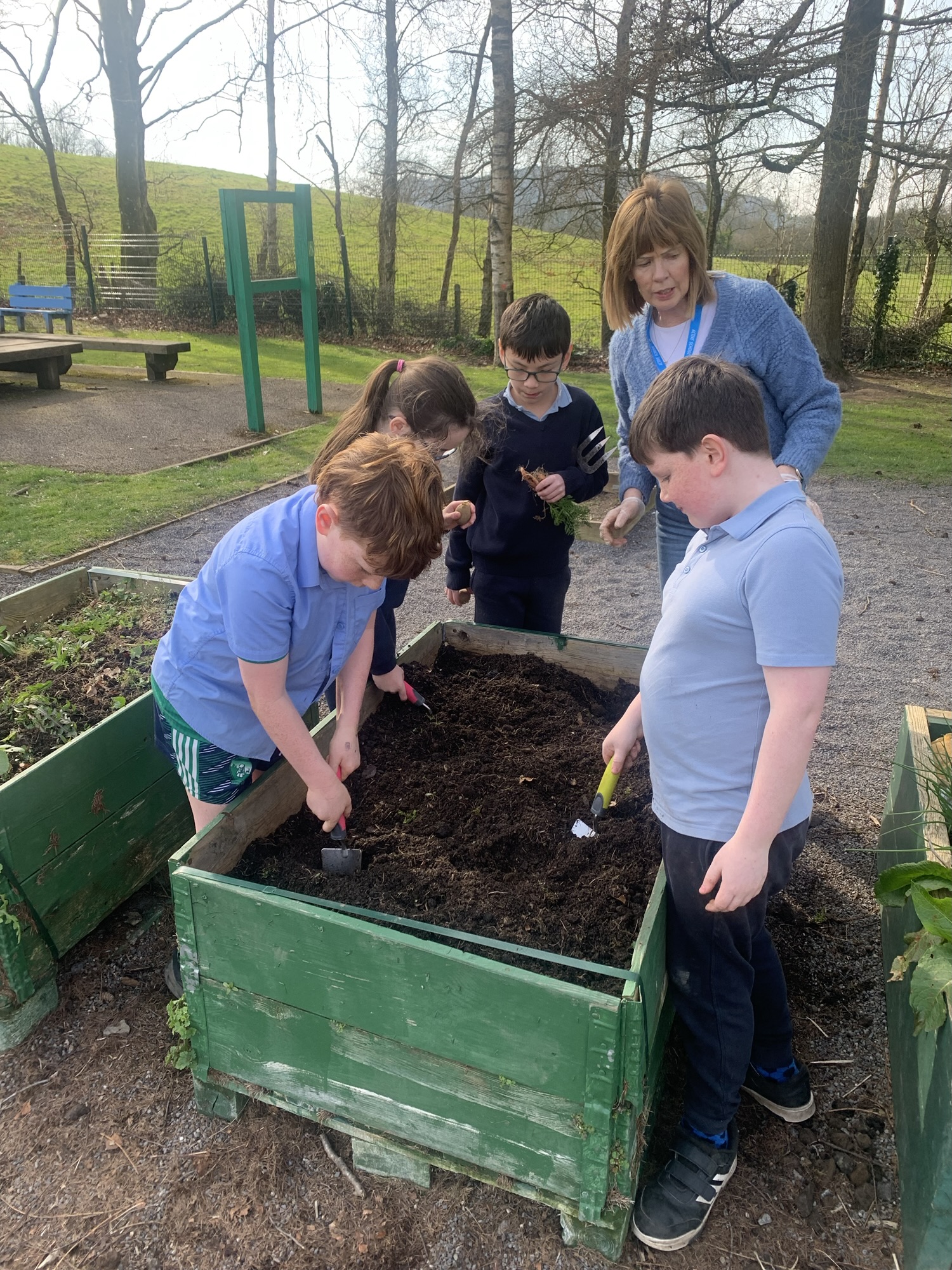 Ms Clarke brought 2nd and 3rd class outside to plant some bulbs for Spring