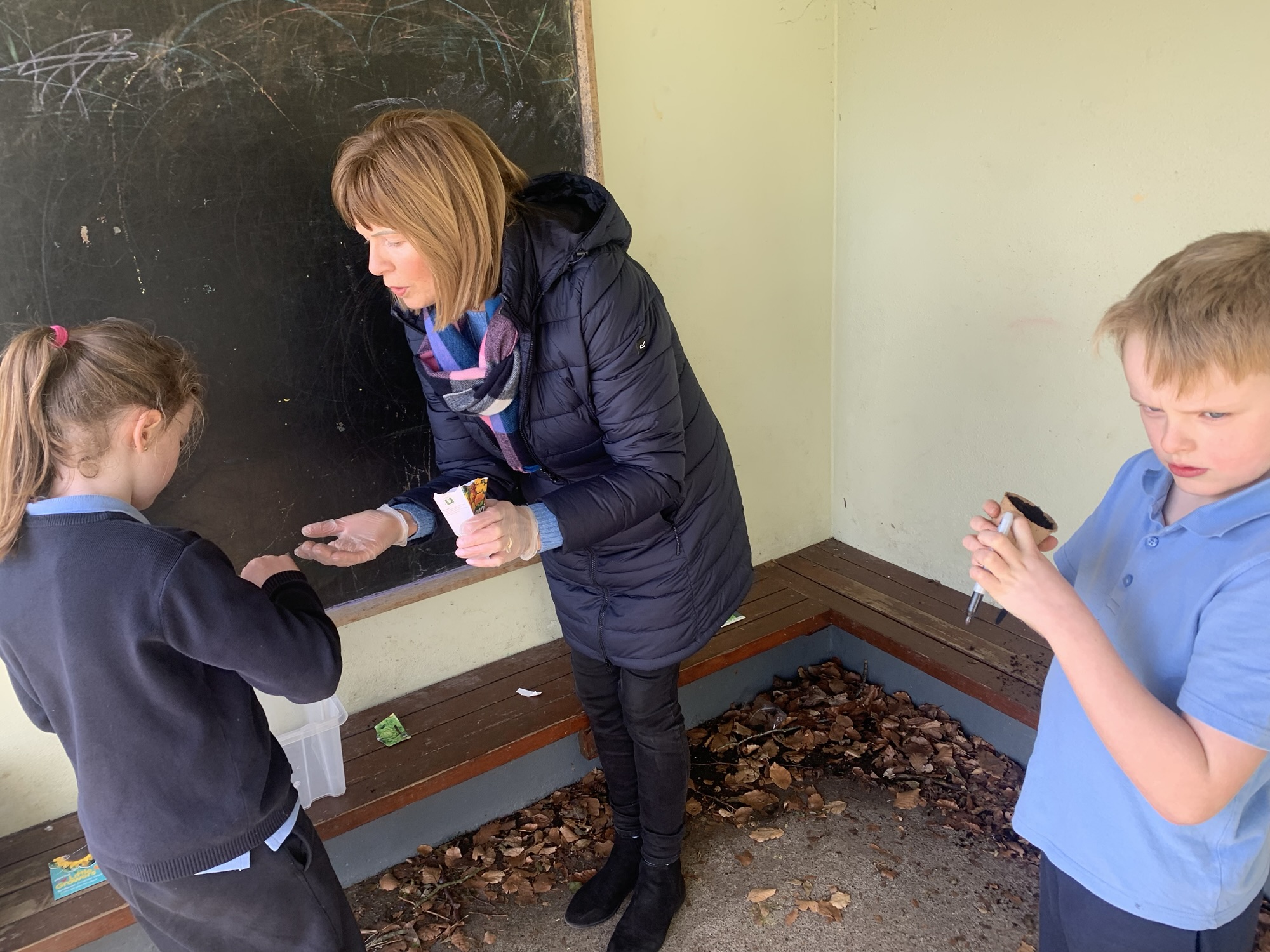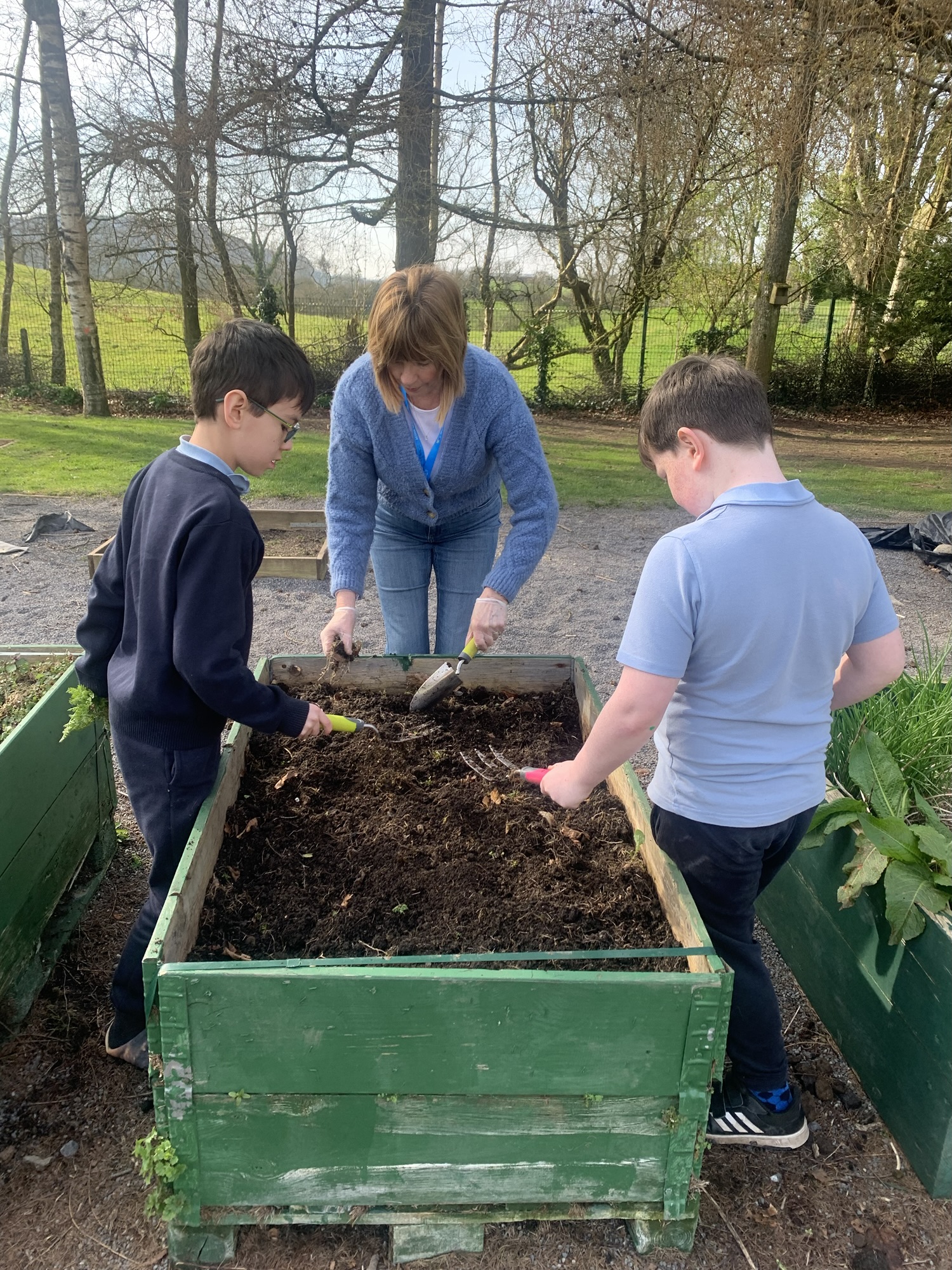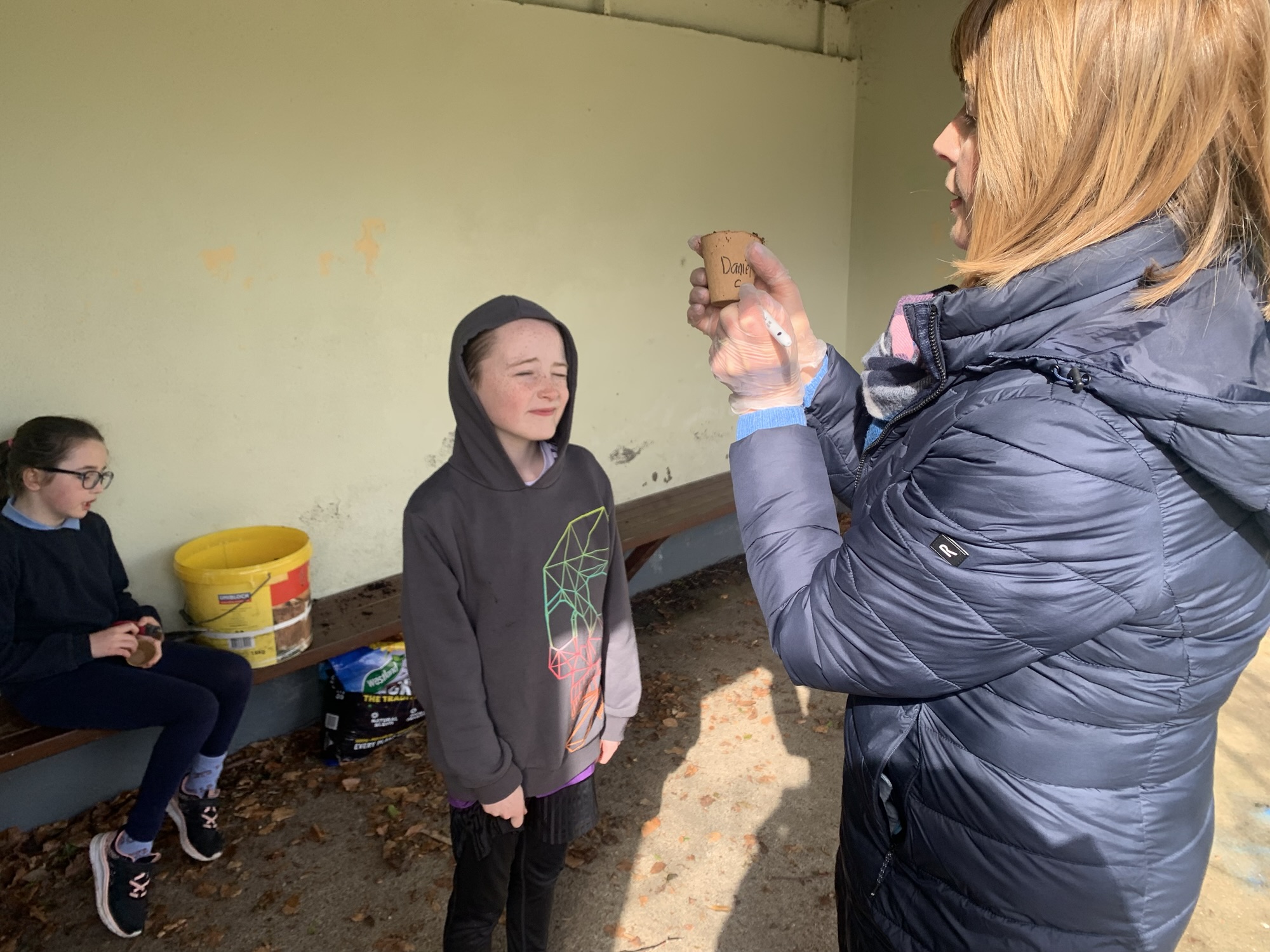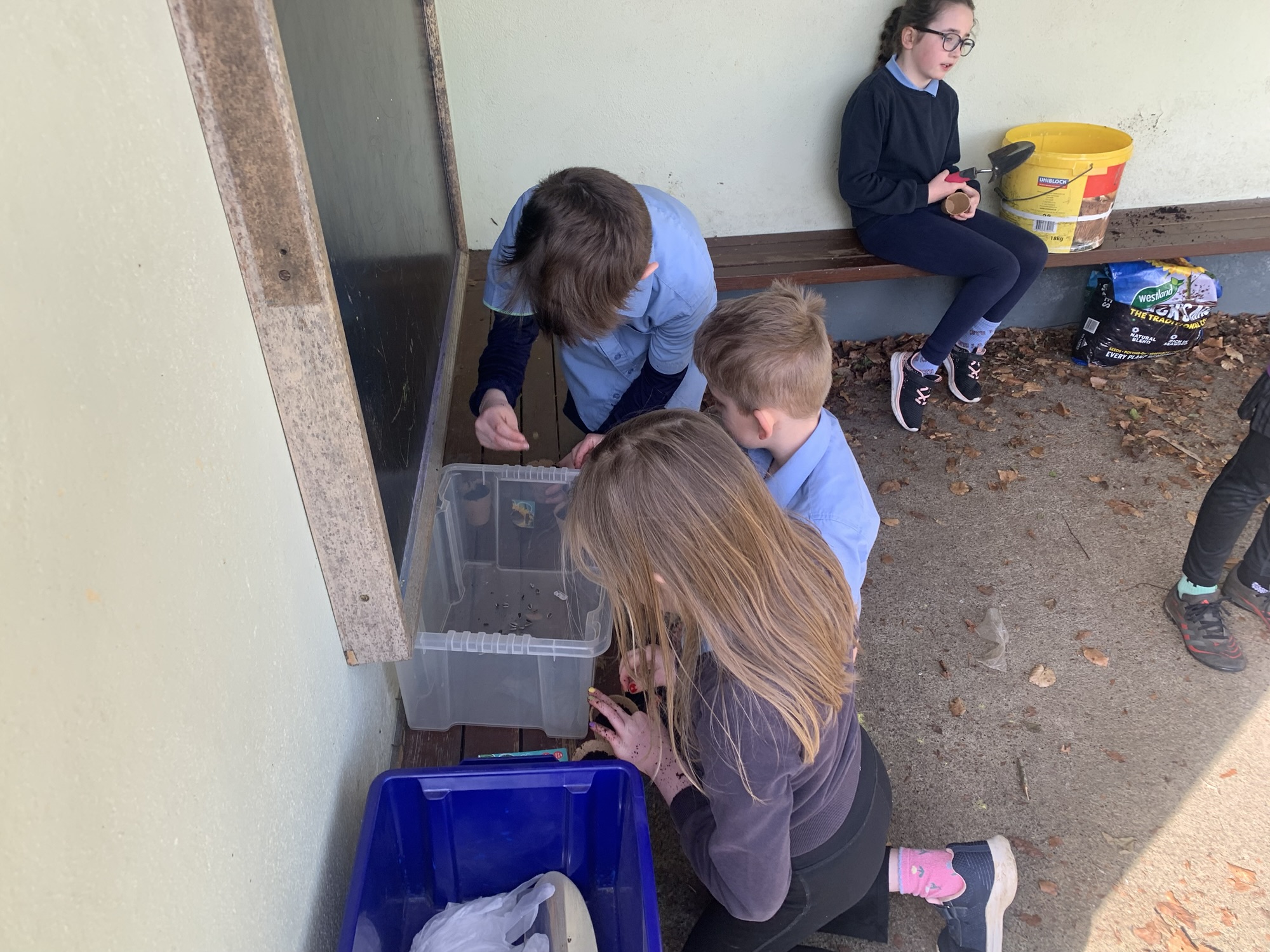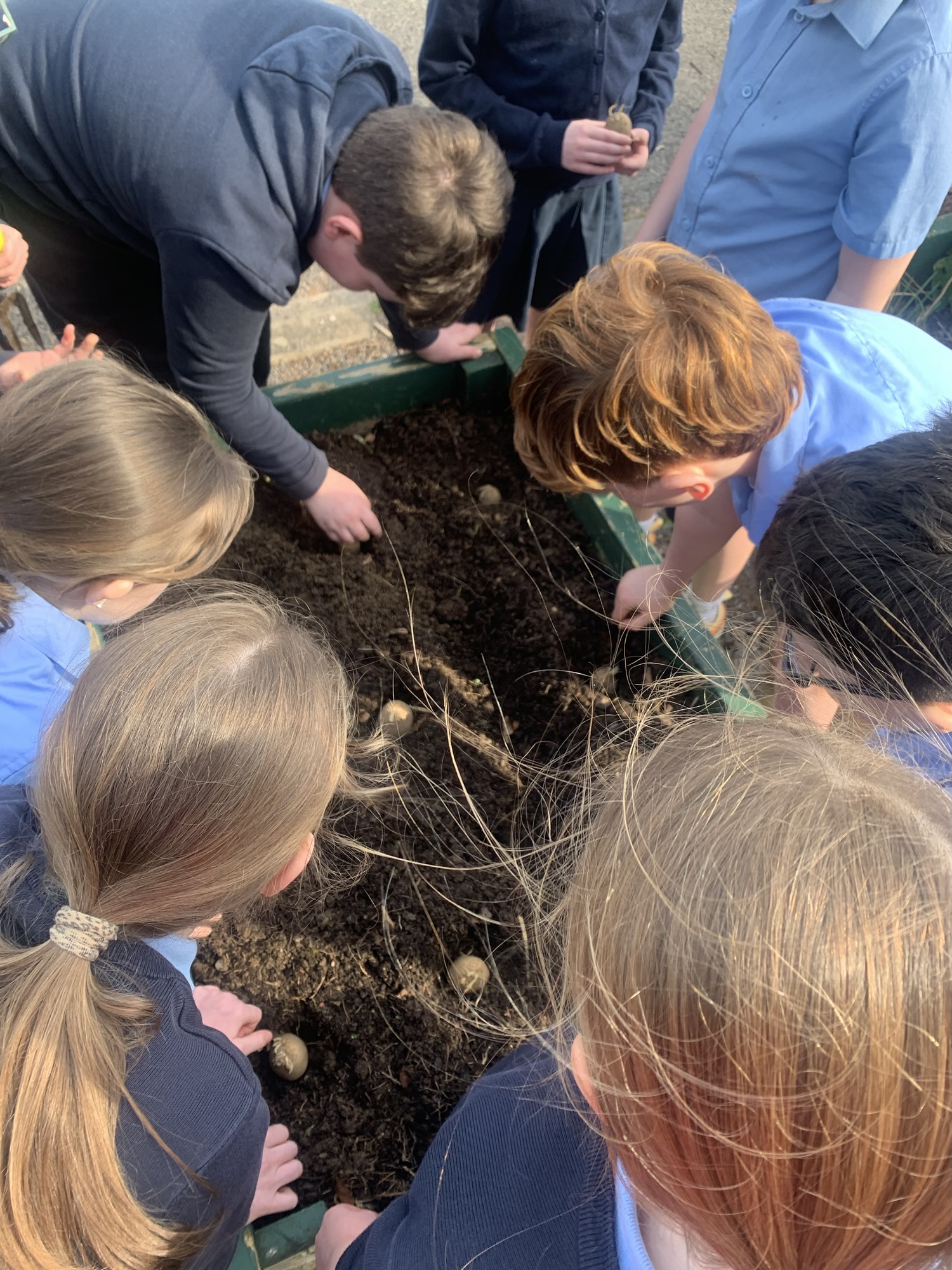Ms Clarke brought 2nd and 3rd class outside to plant some bulbs for Spring