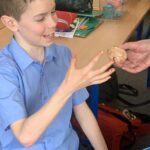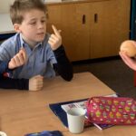 We also made a bouncy egg!! We investigated the chemical reactions and effects of acids on materials. We put a raw egg into vinegar and left it there for 72 hours. The acid in the vinegar made the shell soft, and we managed to bounce our egg!!
