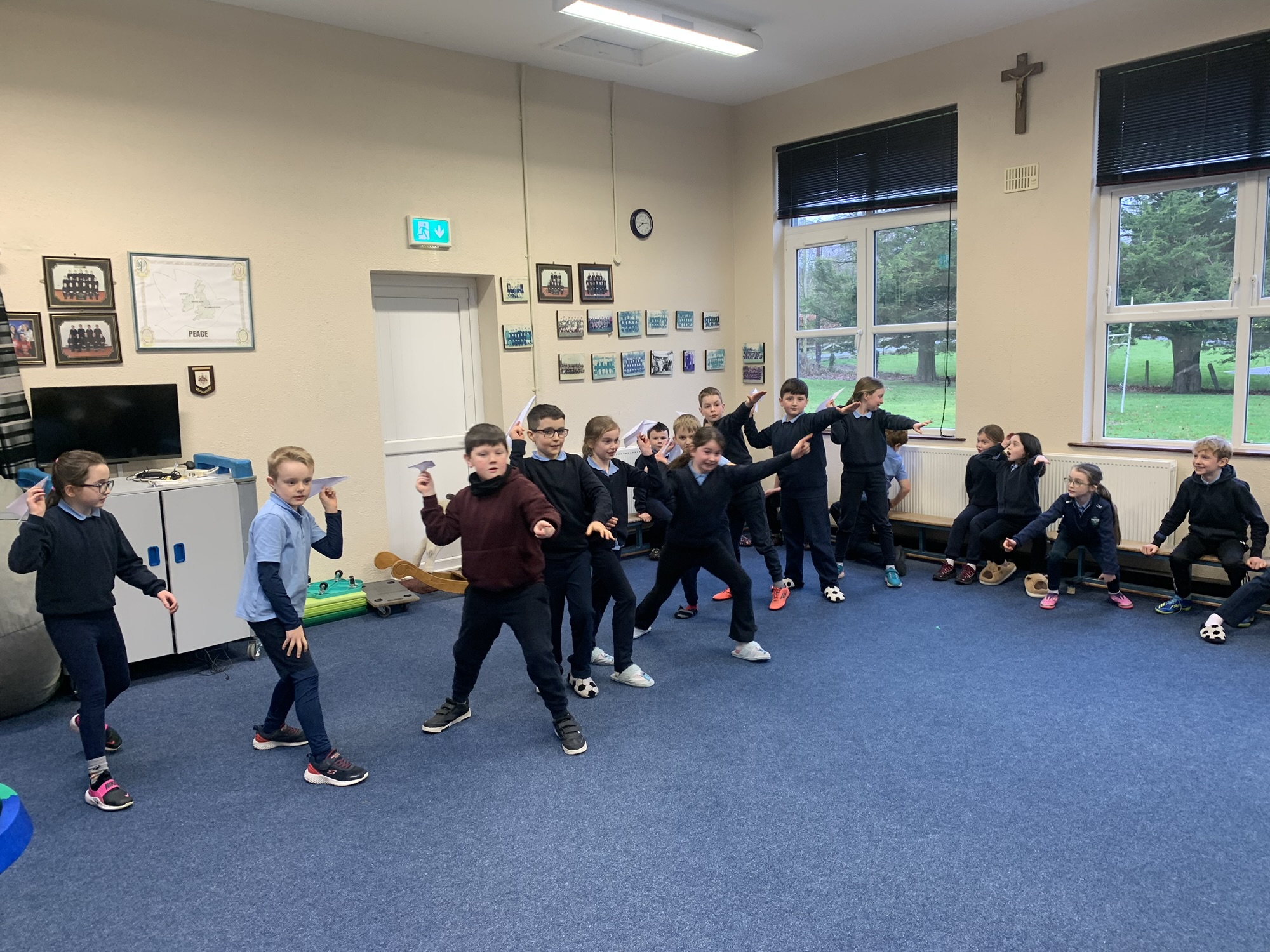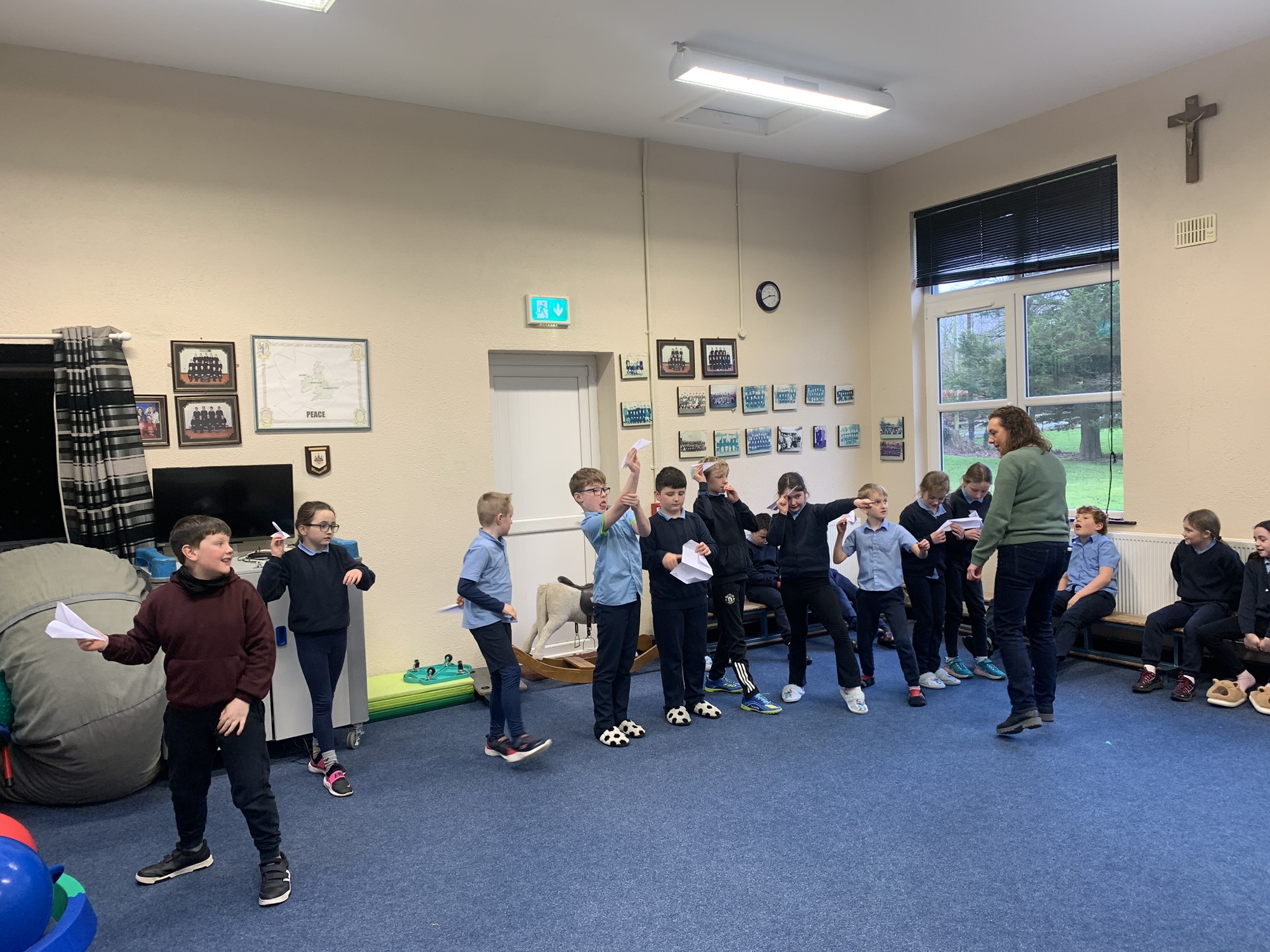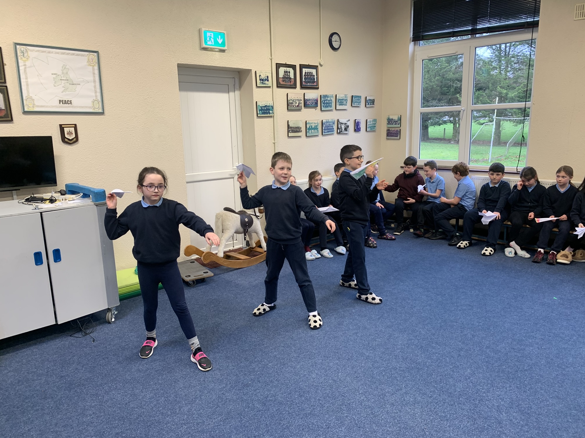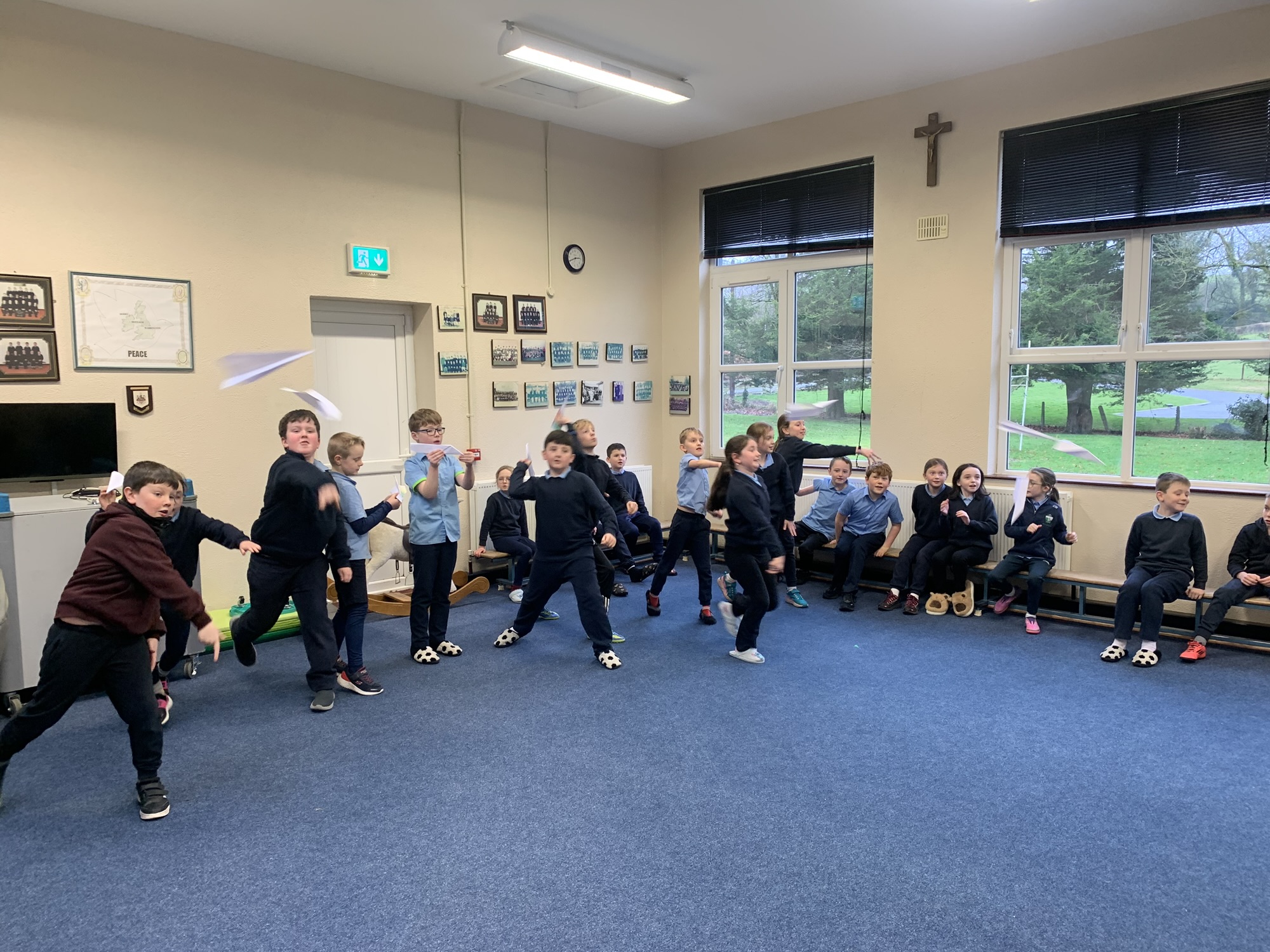 We studied the Wright Brothers and discovered that they flew the first powered, sustained, and controlled aeroplane in December 1903.  We made paper aeroplanes, and in our hall, we had a competition to see whose aeroplane would fly the furthest.