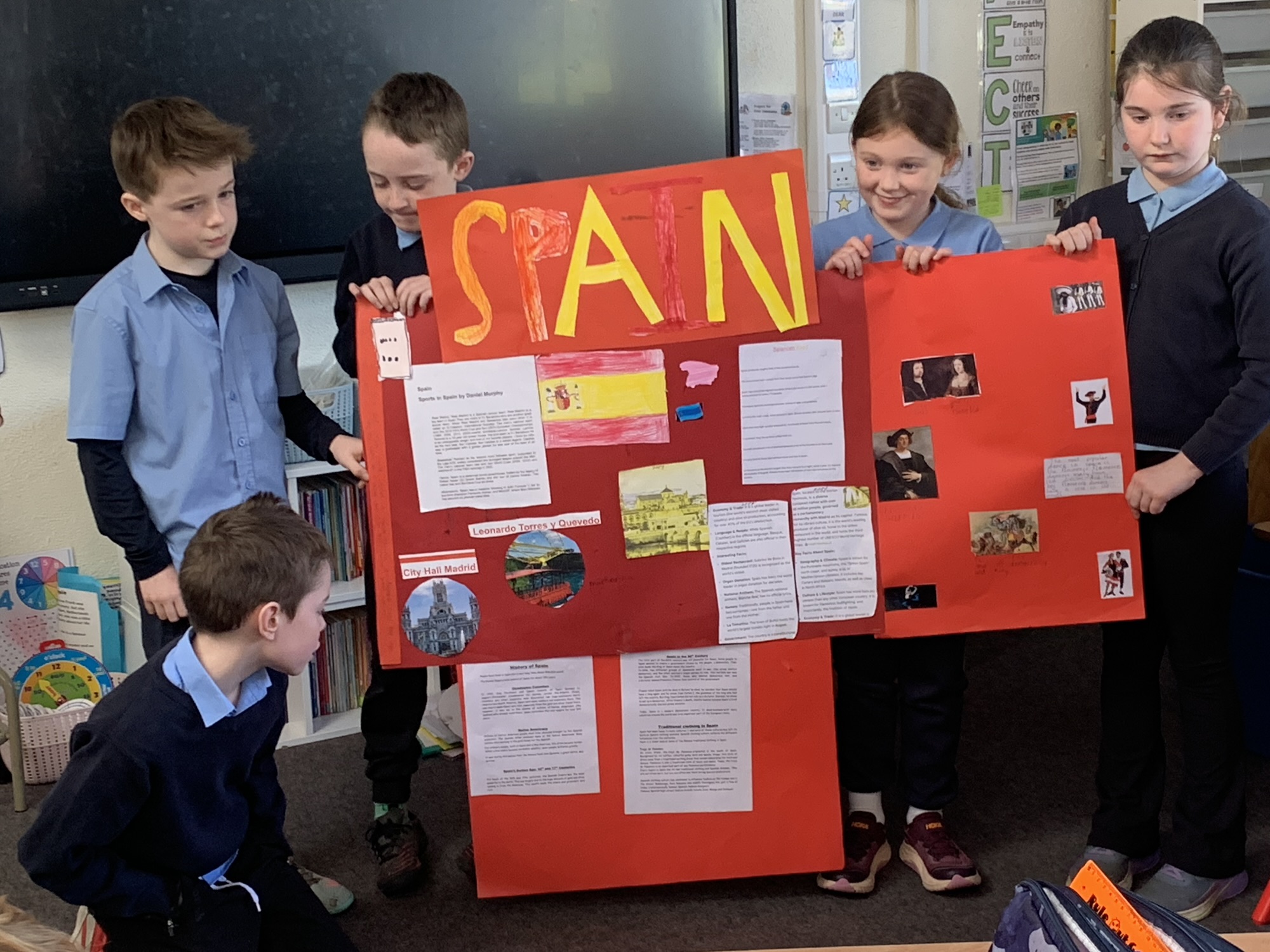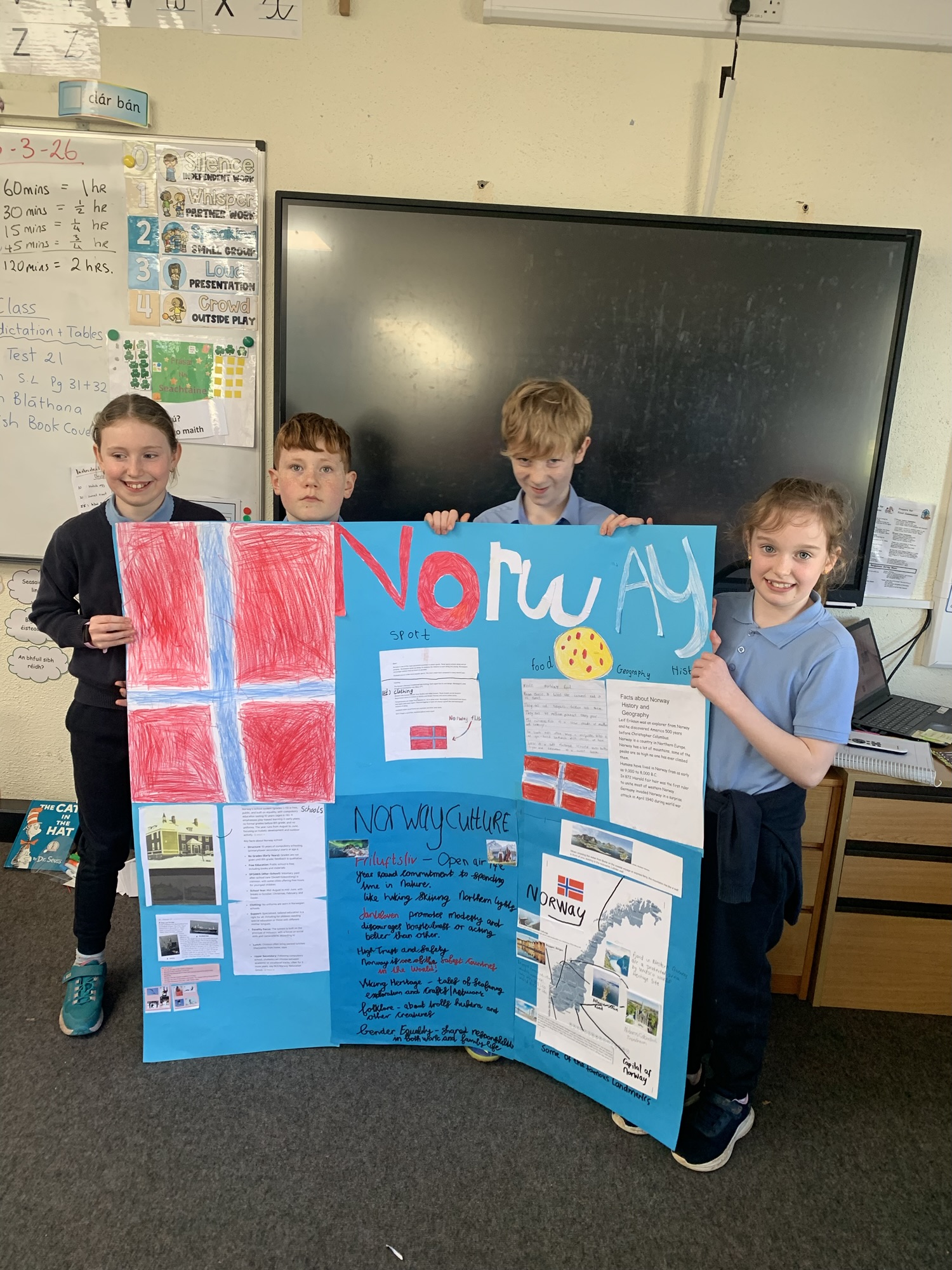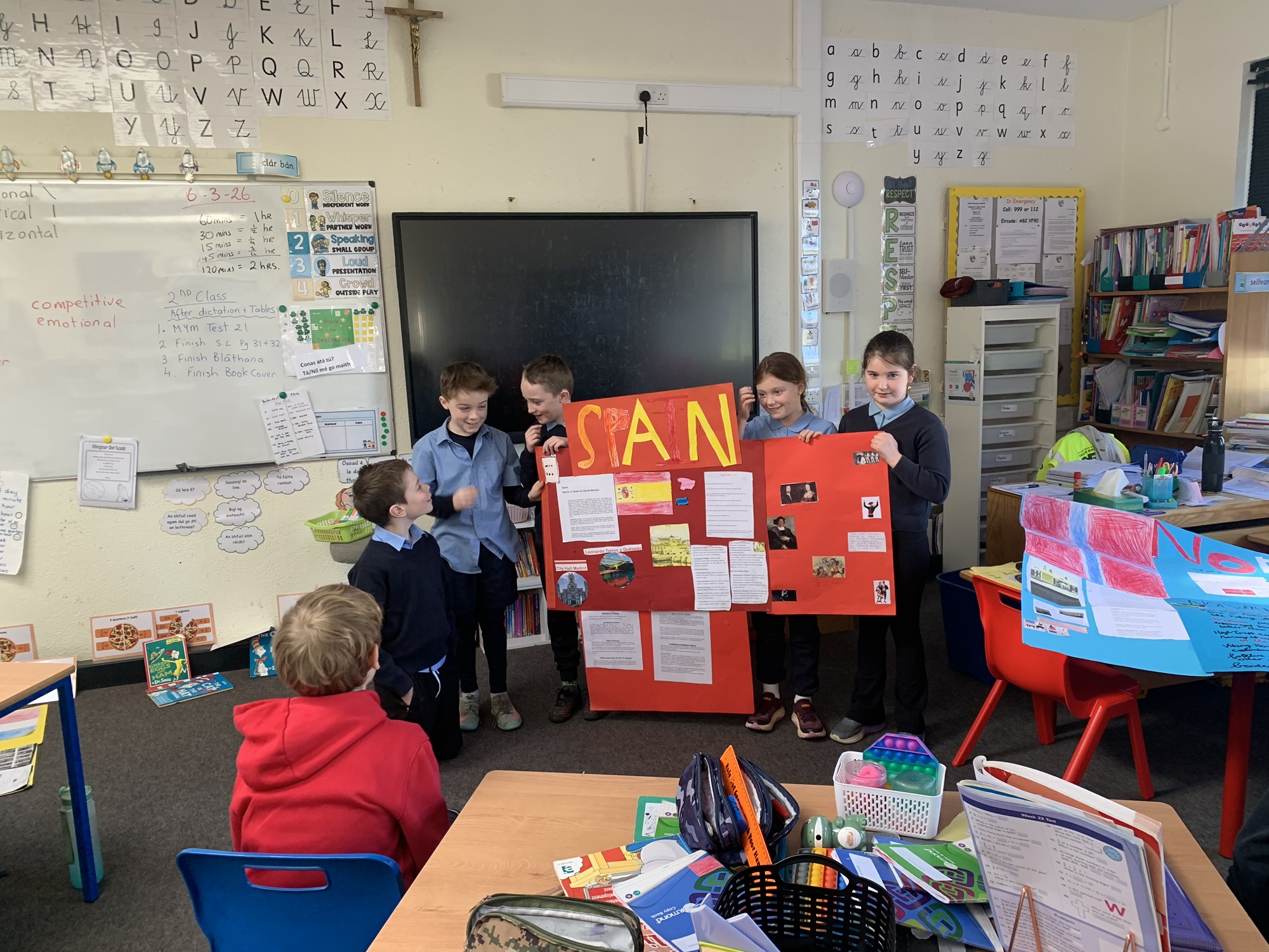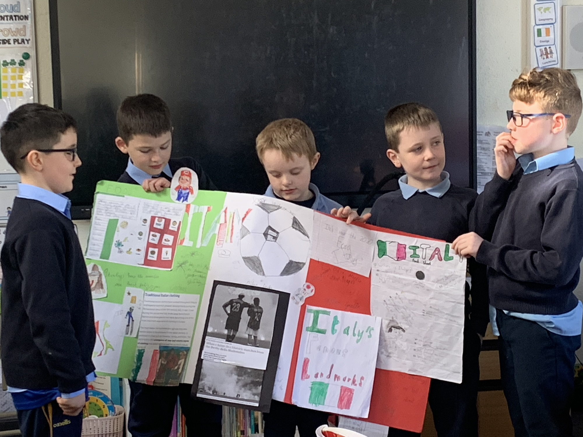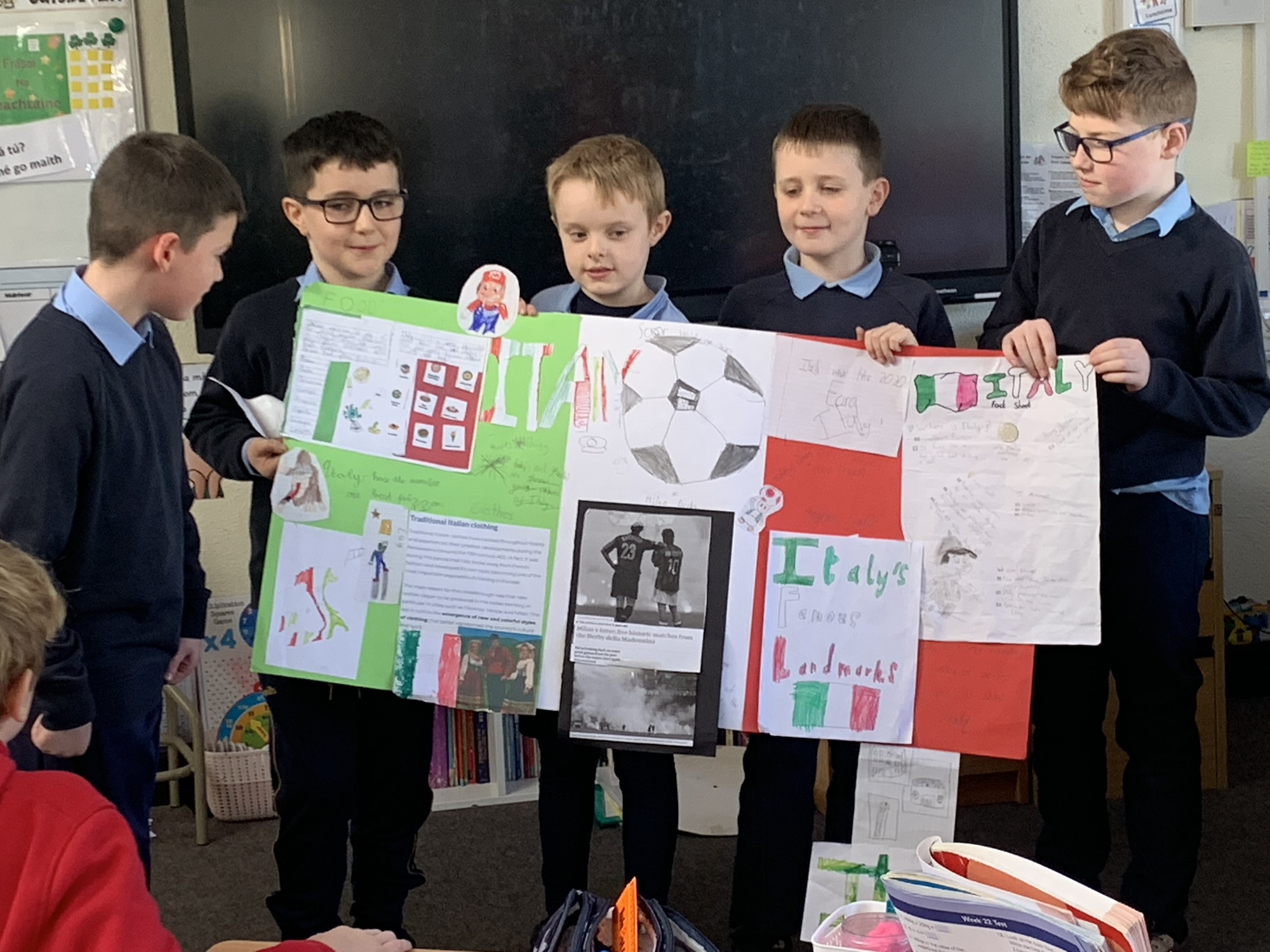 2nd class & 3rd class worked in groups to learn about various European Countries, create a poster about their country, and present it to the class.
