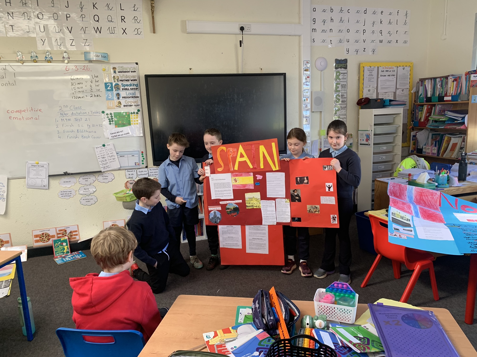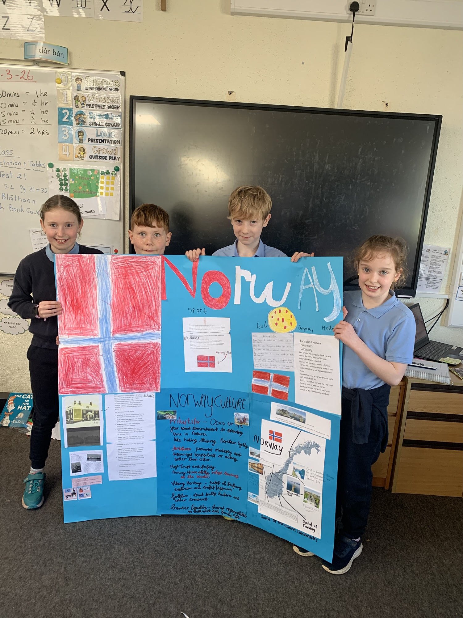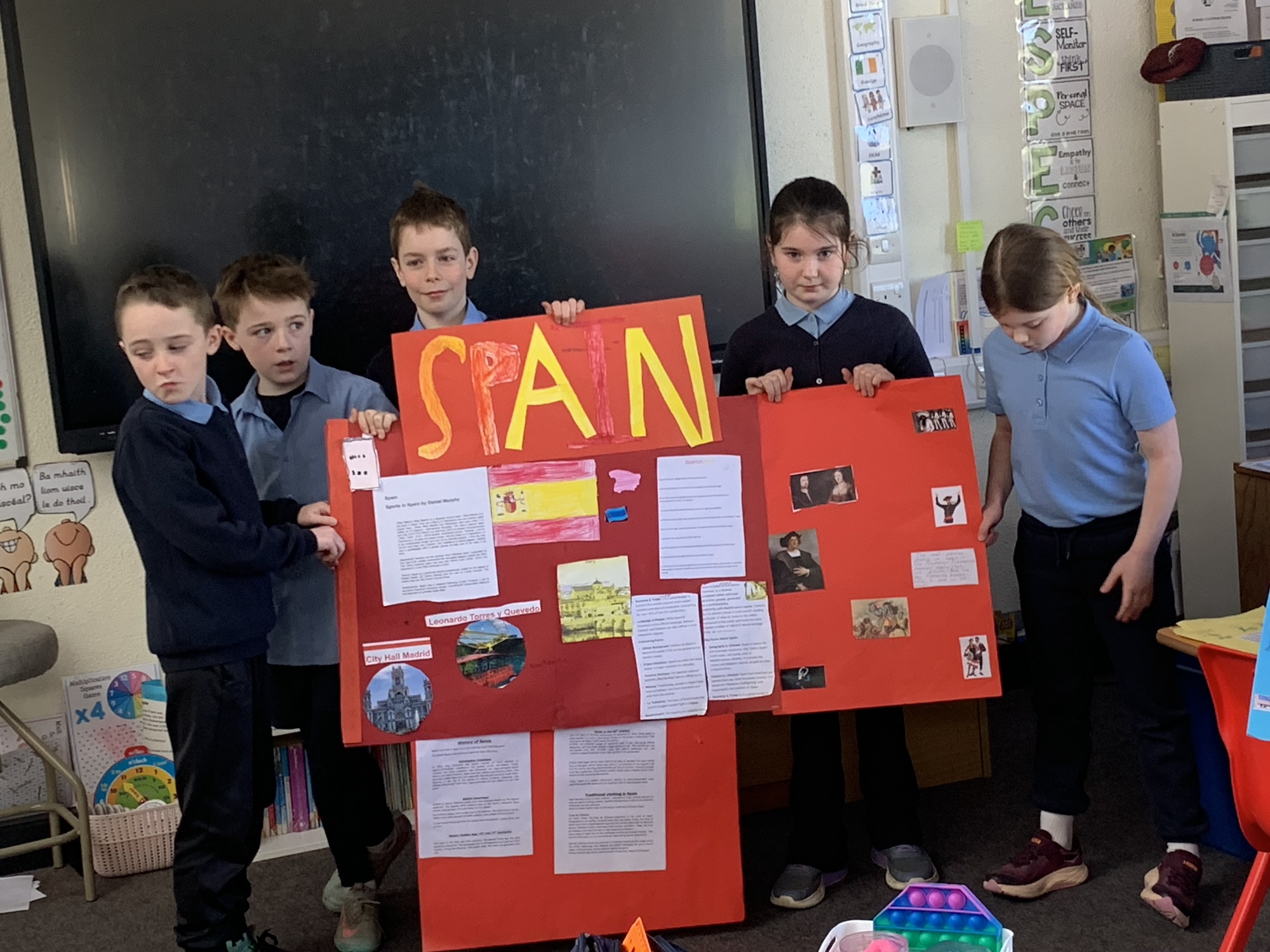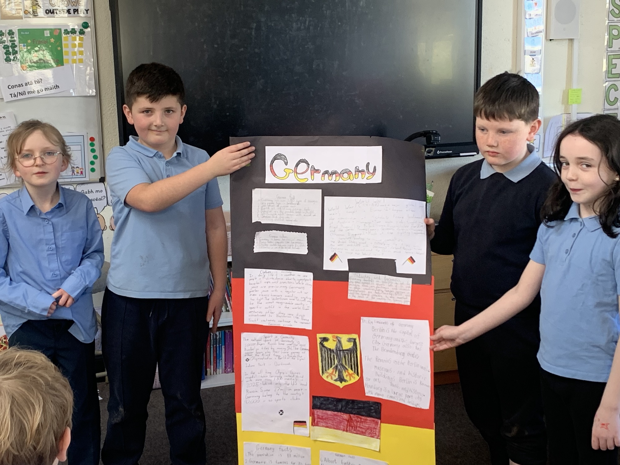 2nd class & 3rd class worked in groups to learn about various European Countries, create a poster about their country, and present it to the class.