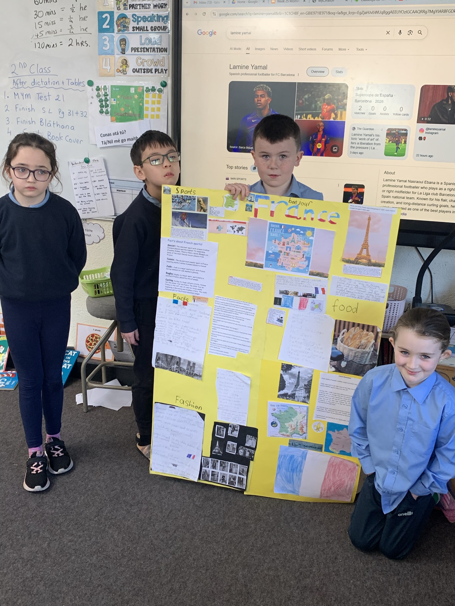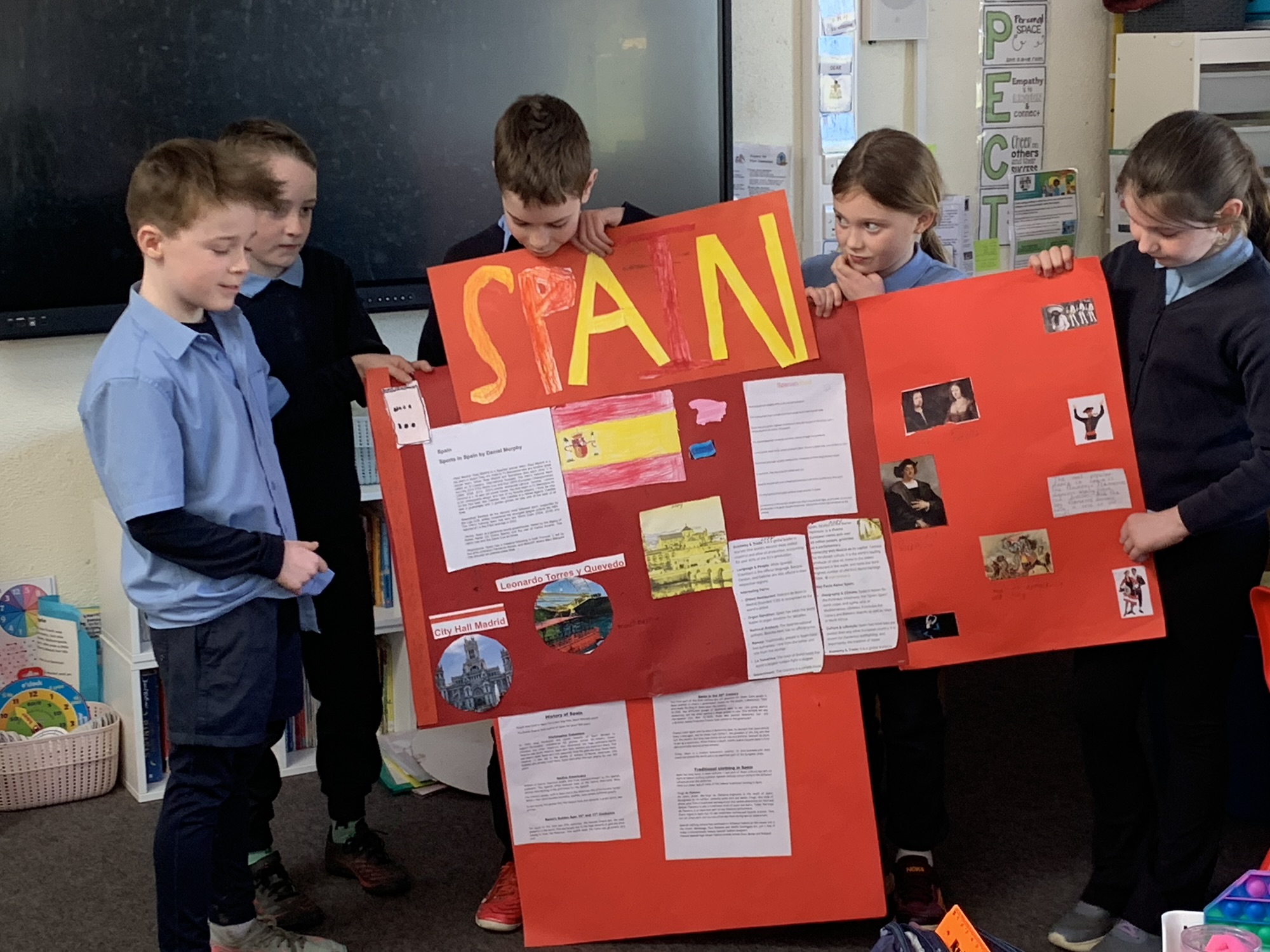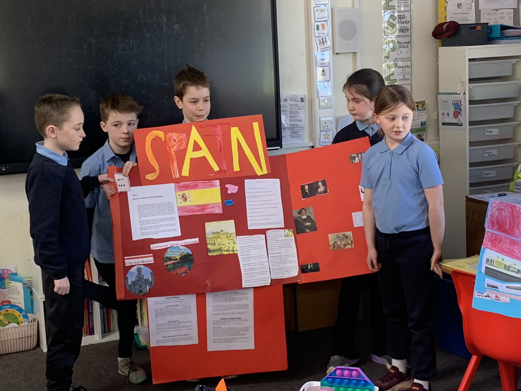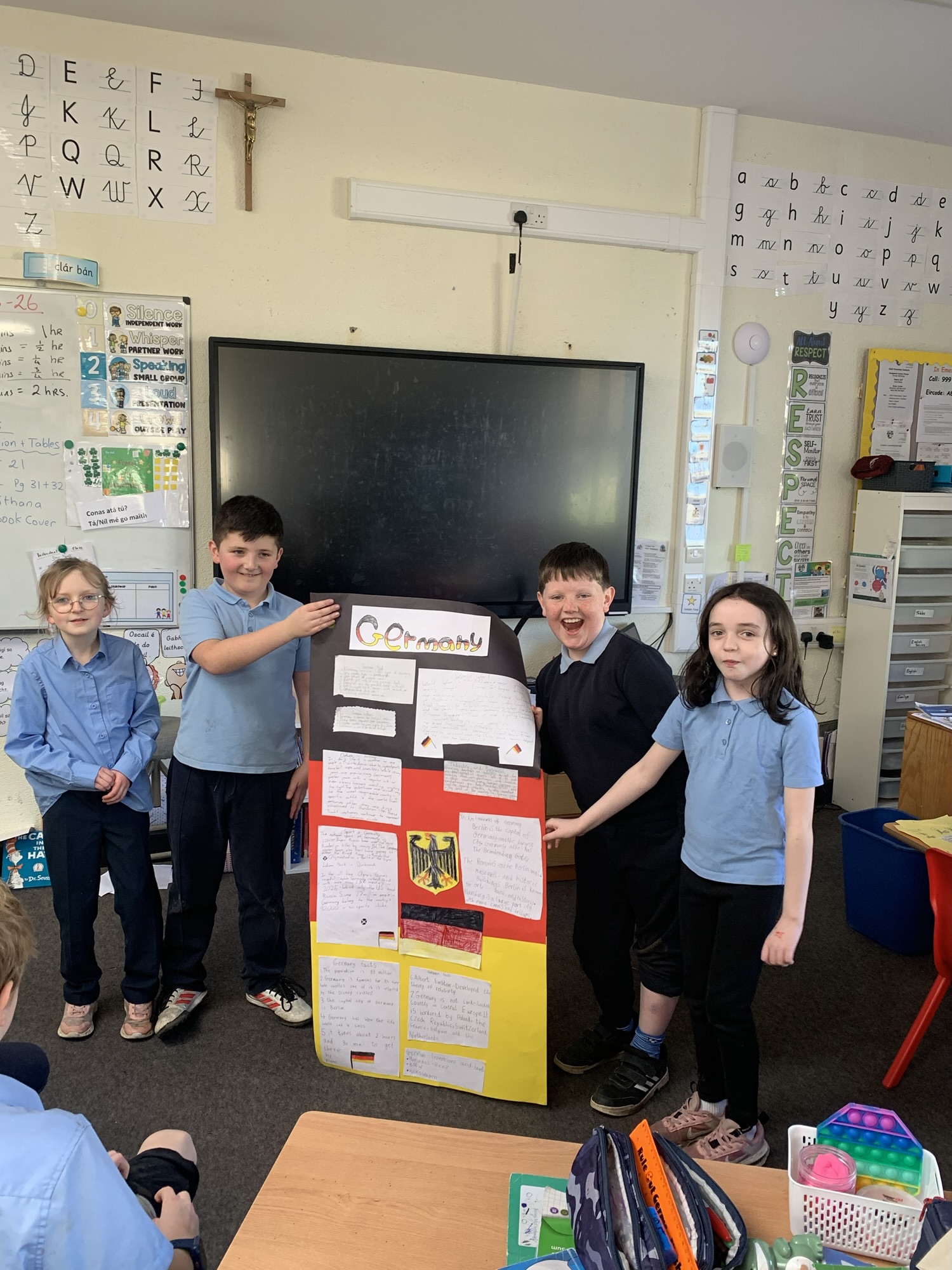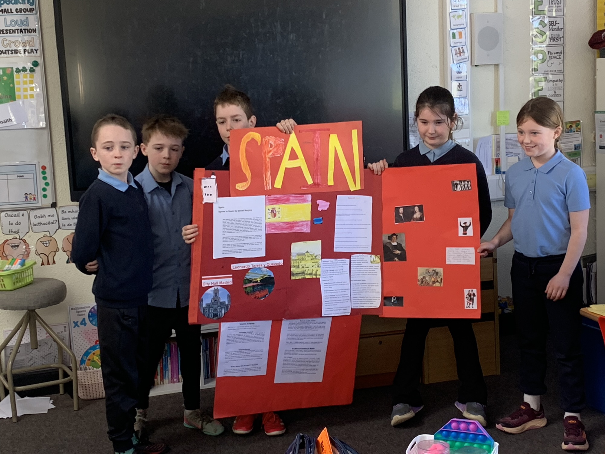 2nd class & 3rd class worked in groups to learn about various European Countries, create a poster about their country, and present it to the class.