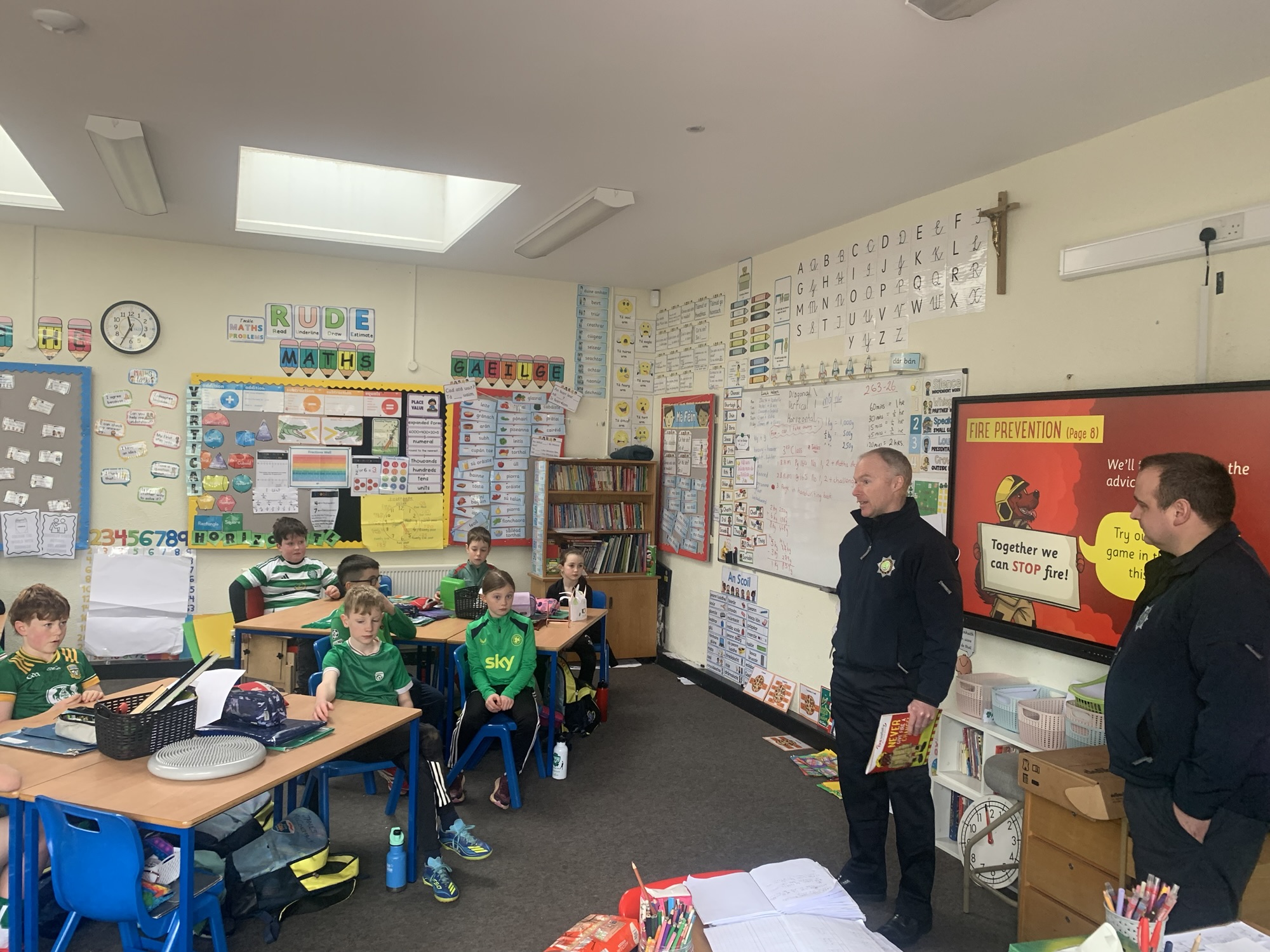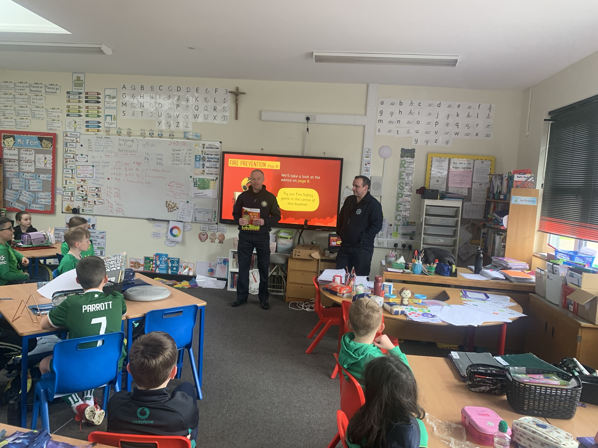 The boys and girls of 2nd class and 3rd class had a visit from Oldcastle Fire Brigade who spoke with the whole class about Fire Safety in the home.