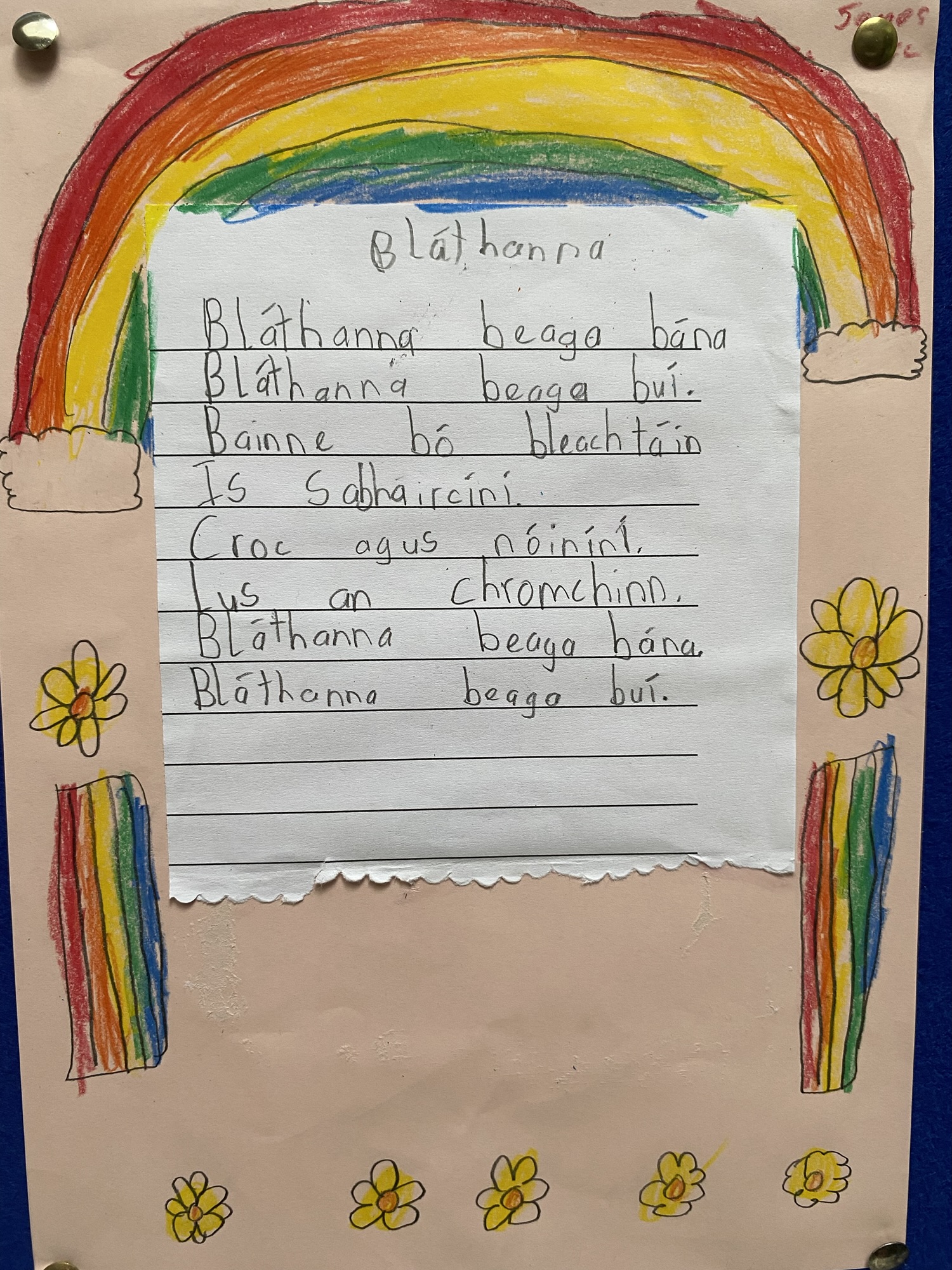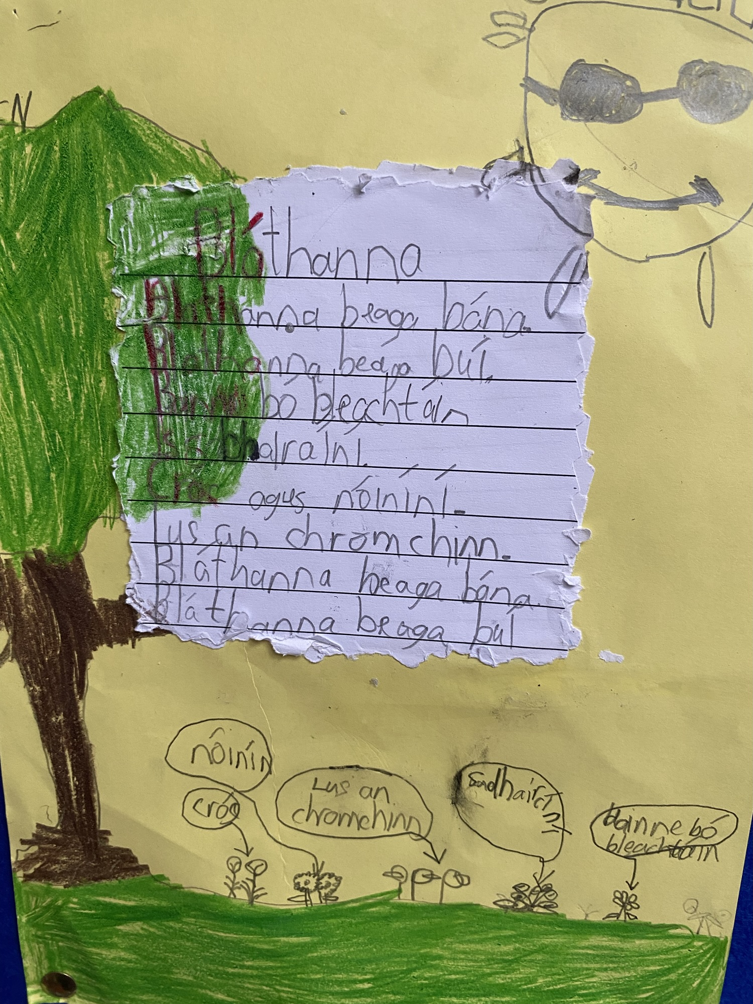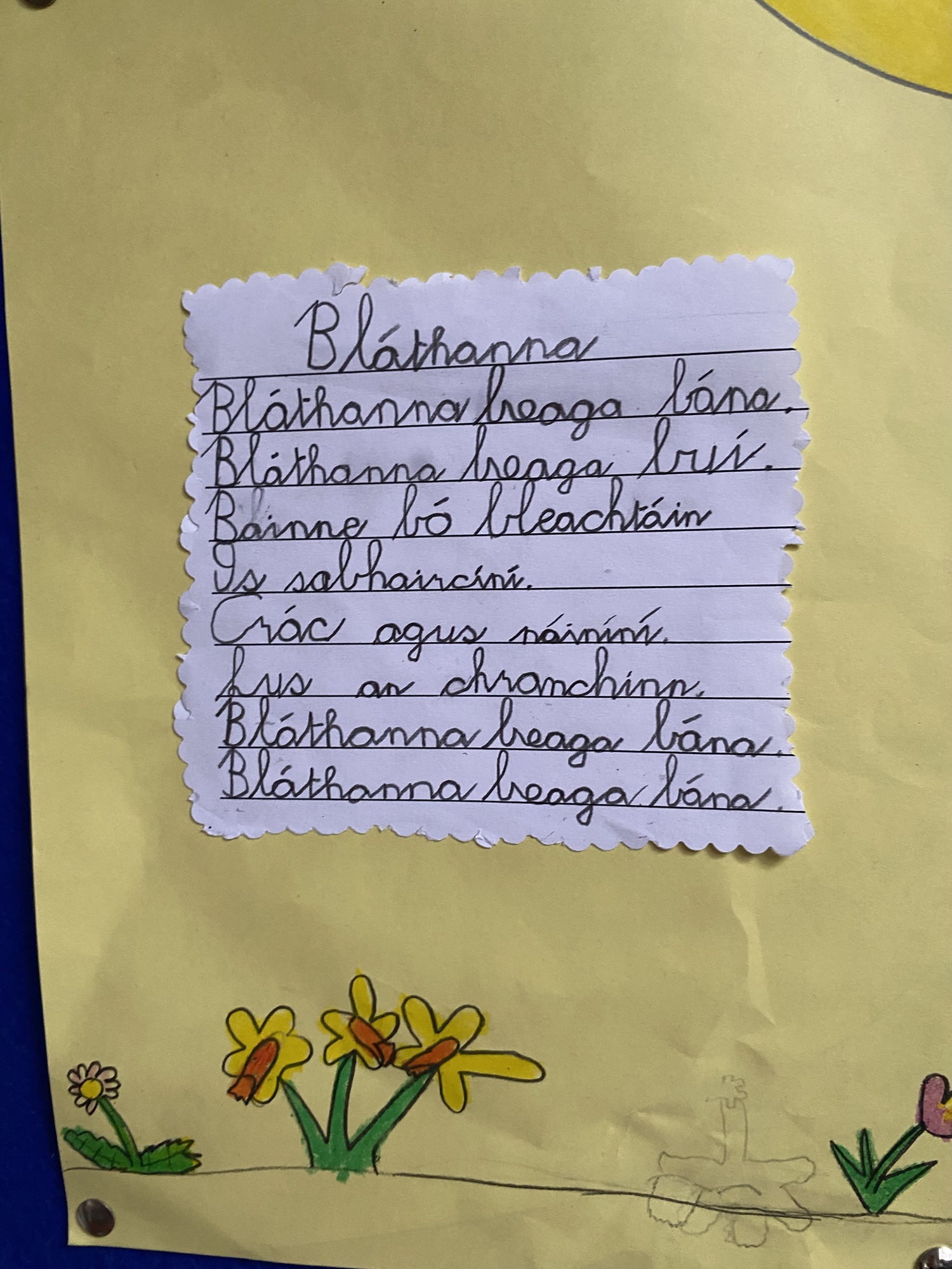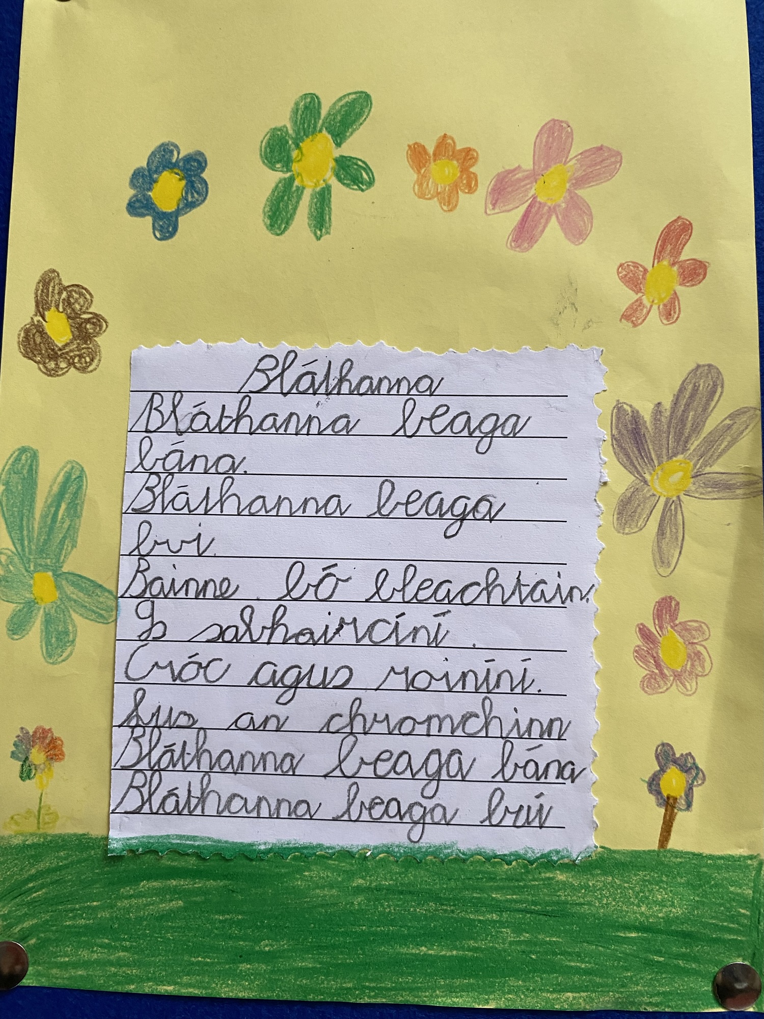 Daffodils and tulips are their favourites, so they created a colourful art display of these.