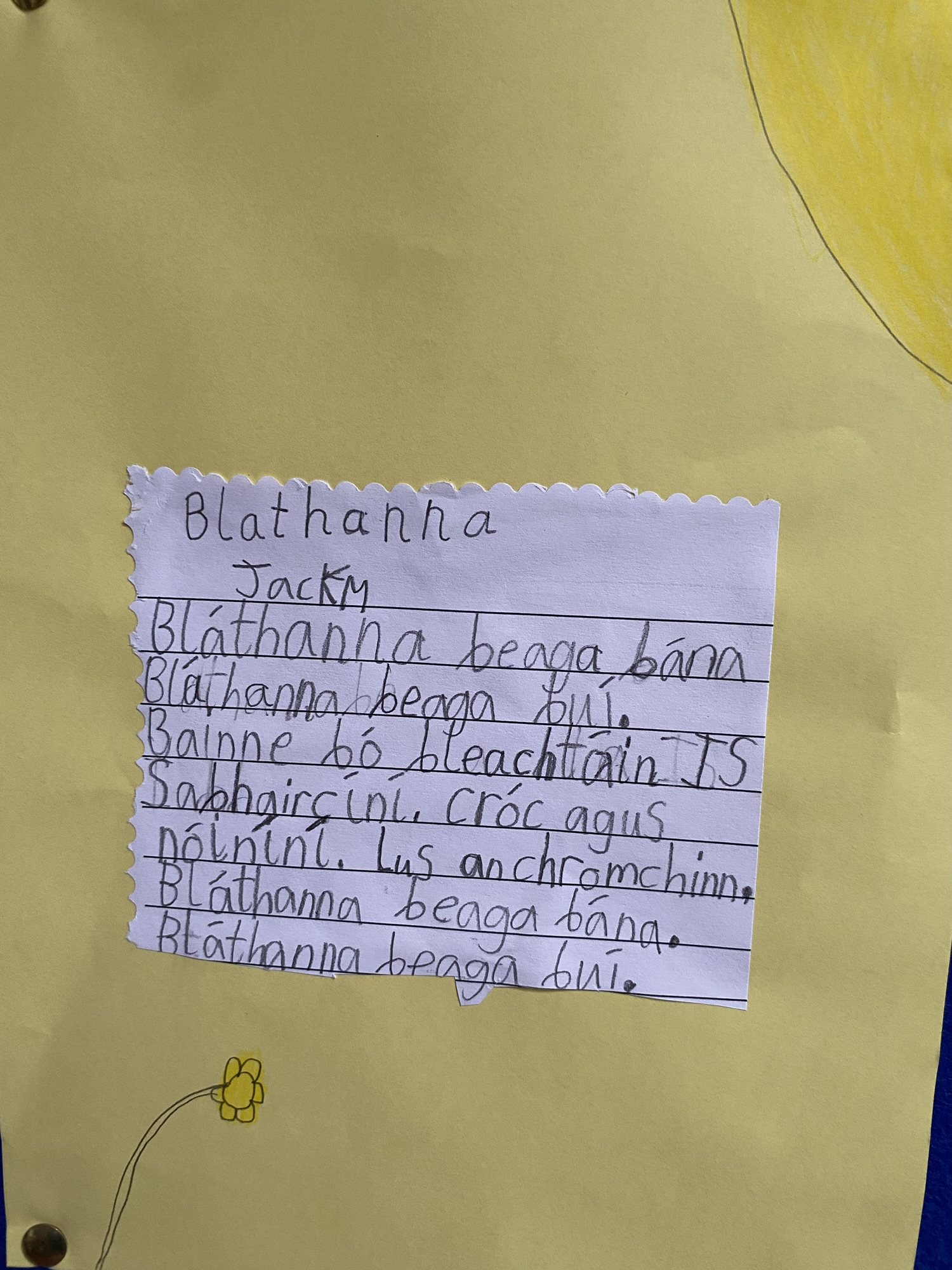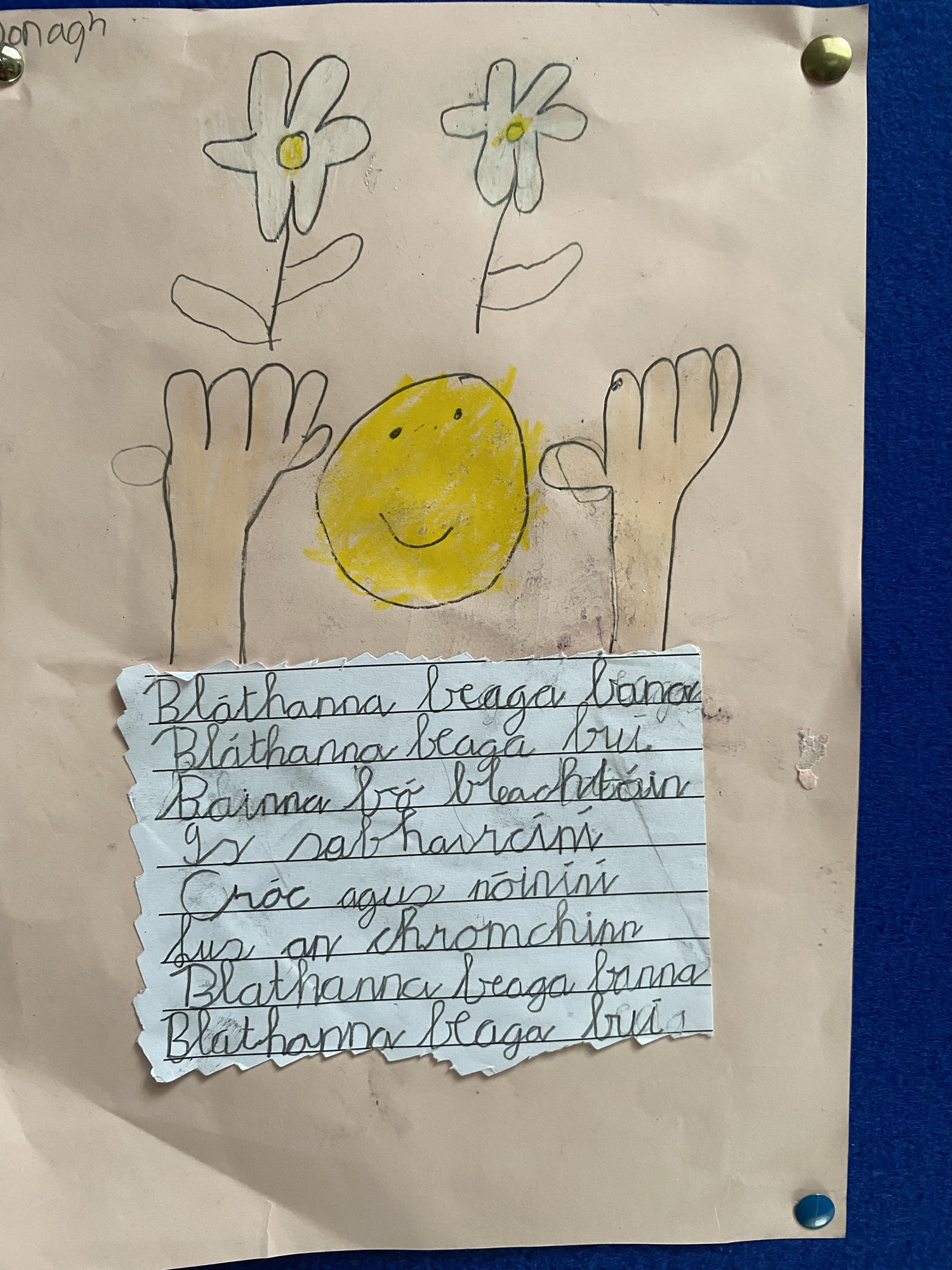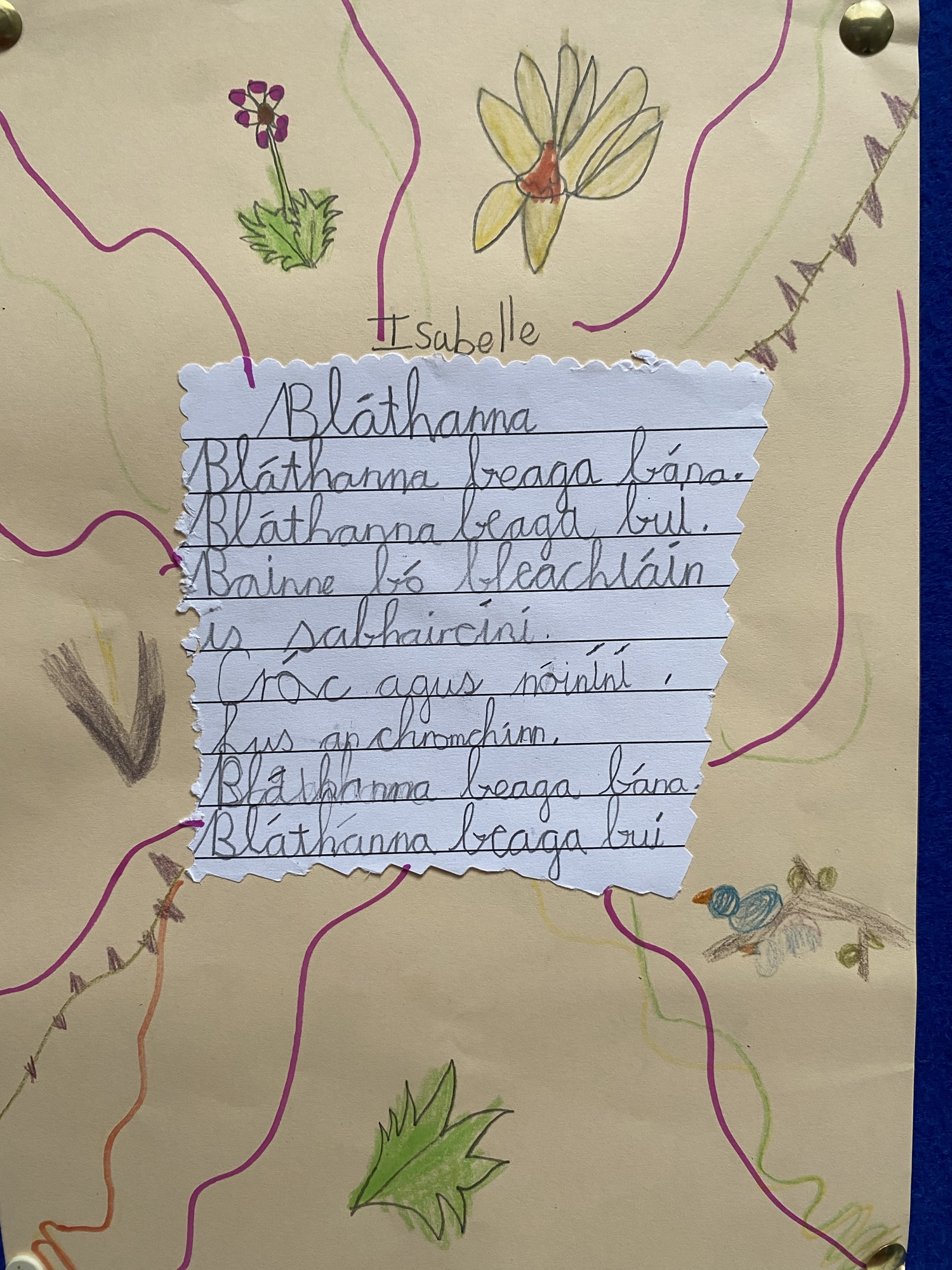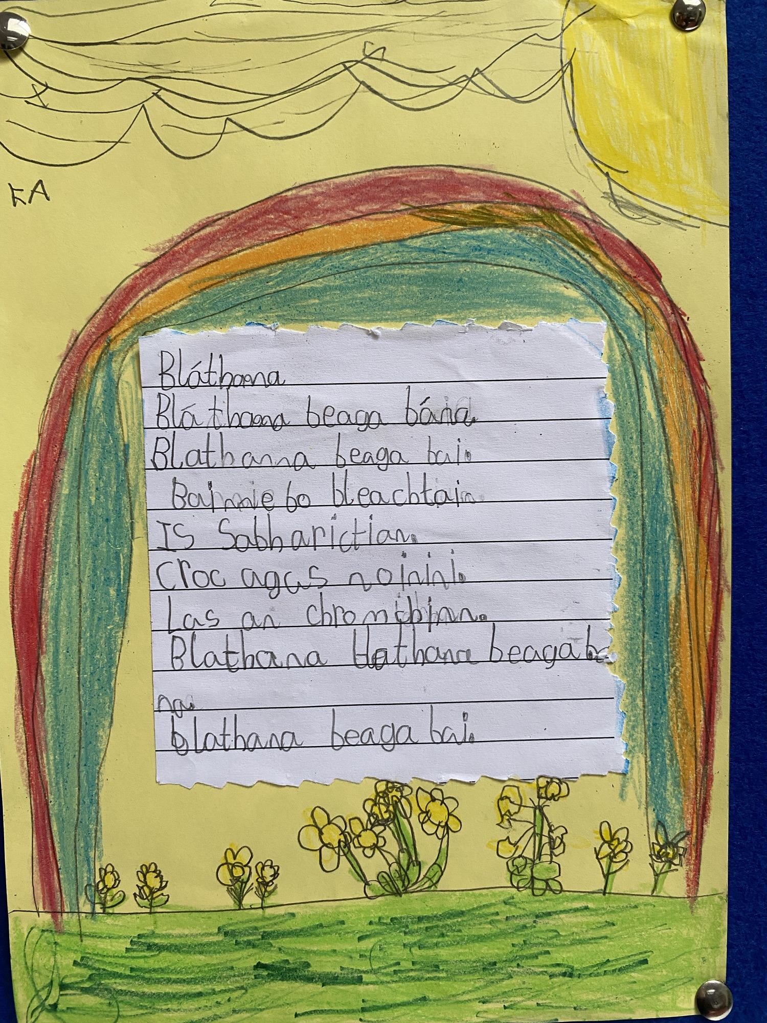 Daffodils and tulips are their favourites, so they created a colourful art display of these.