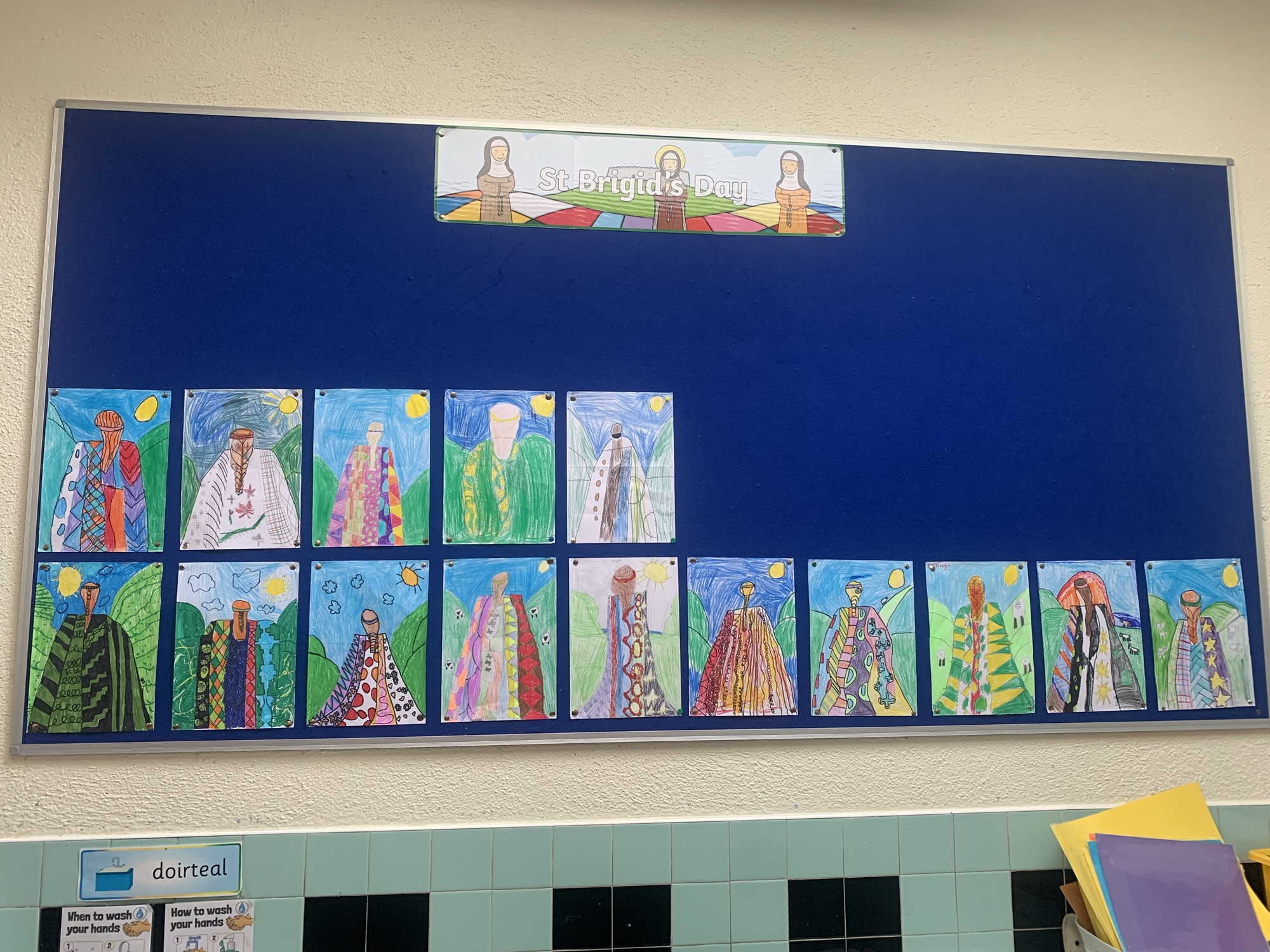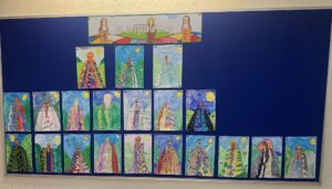 1st and 2nd Class created some very colourful self portraits.