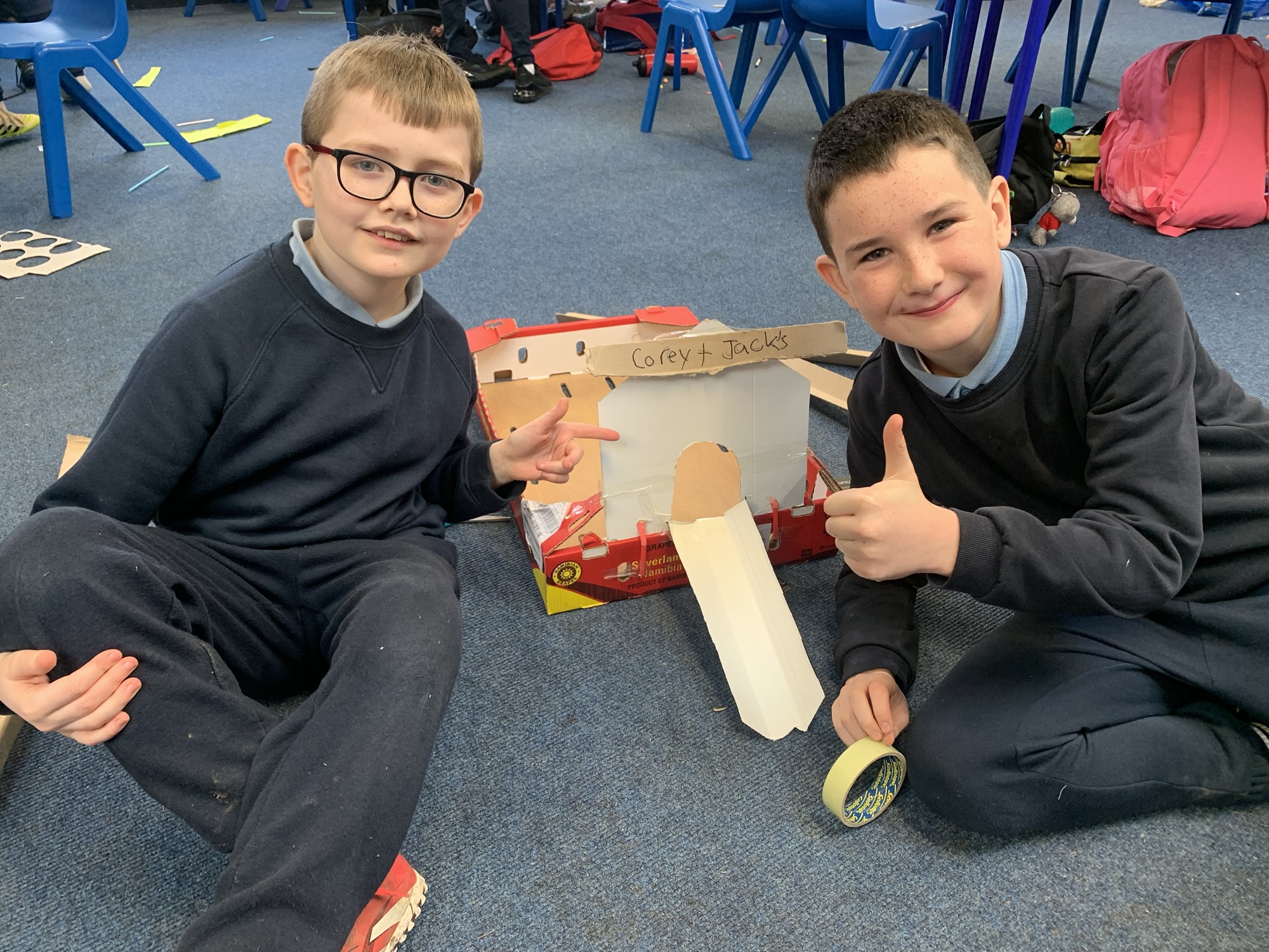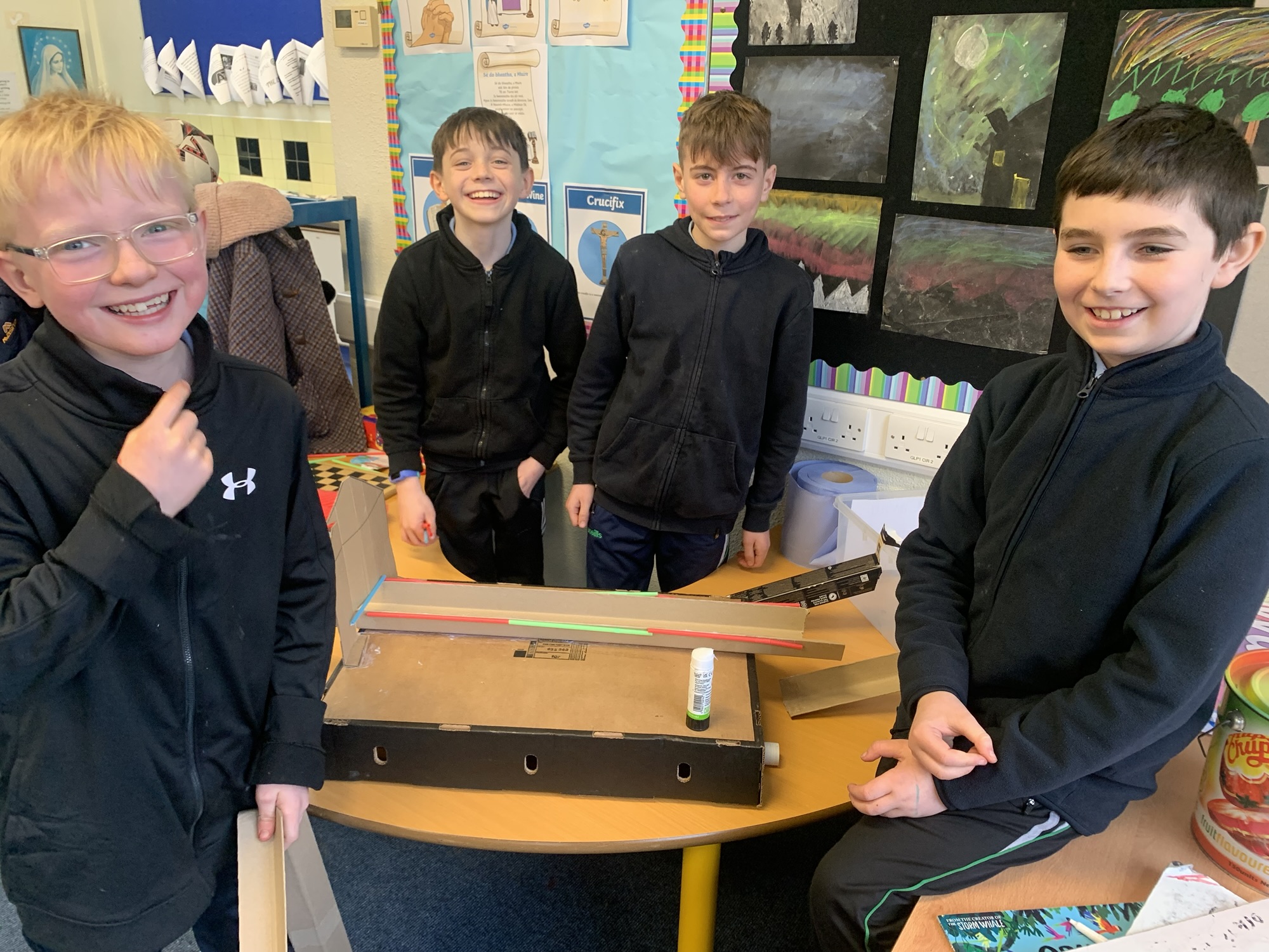 2nd & 3rd Classes designed and built aeroplanes that they tested out in the hall. They ended their week with an explosive experiment!! The 4th class also created bridges in their class.