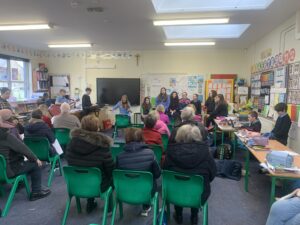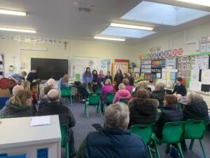 During Catholic Schools Week, Grandparents were invited to the school on Grandparents Day. Children entertained the visitors with songs and poems. After that Grandparents were invited into the different classrooms. Finally the afternoon fun was completed with a cup of tea!